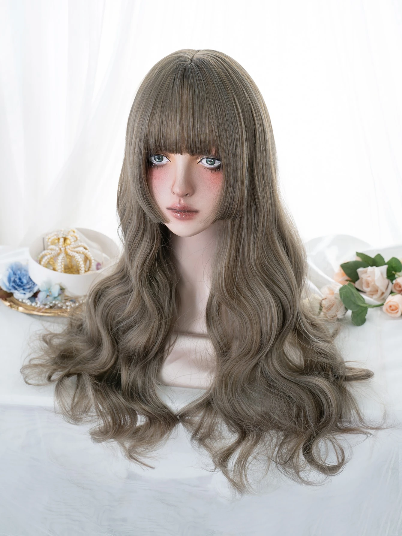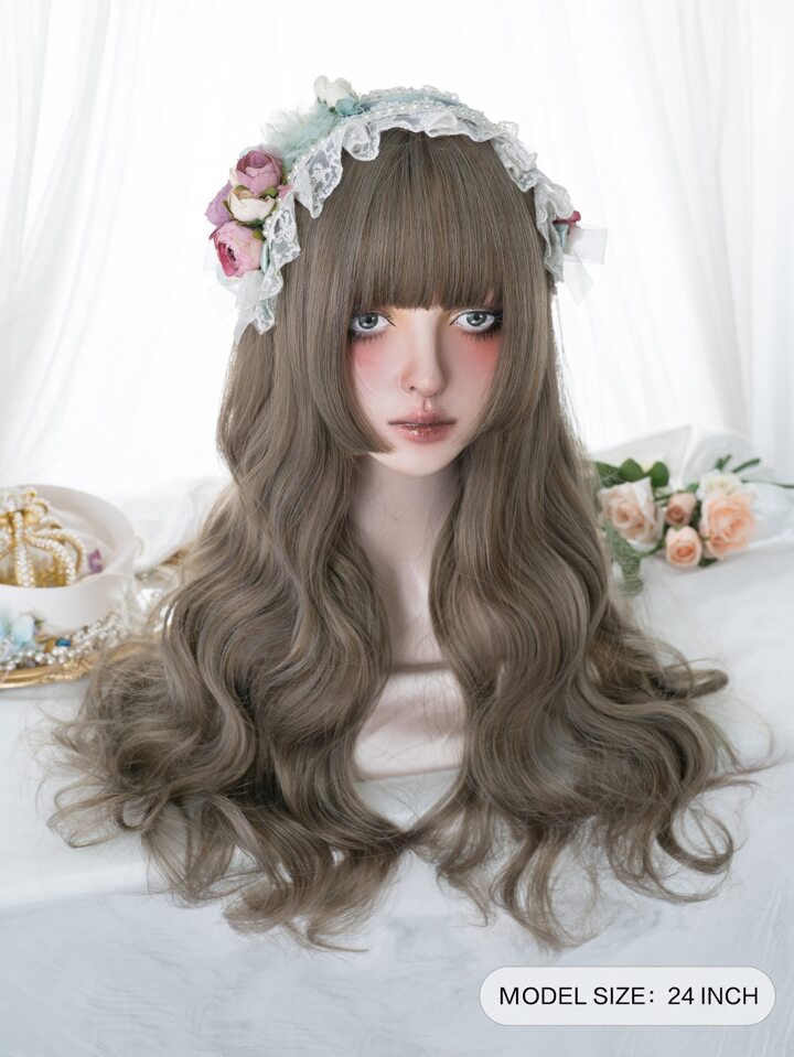 Künstliche Perücke Lang Körperwellen mit Pony