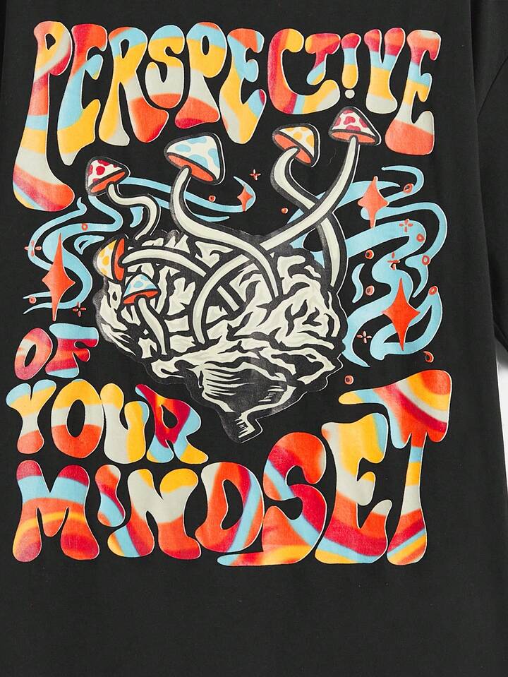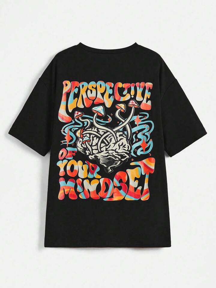 Lsscid Drop Shoulder T-Shirt mit Buchstaben Grafik