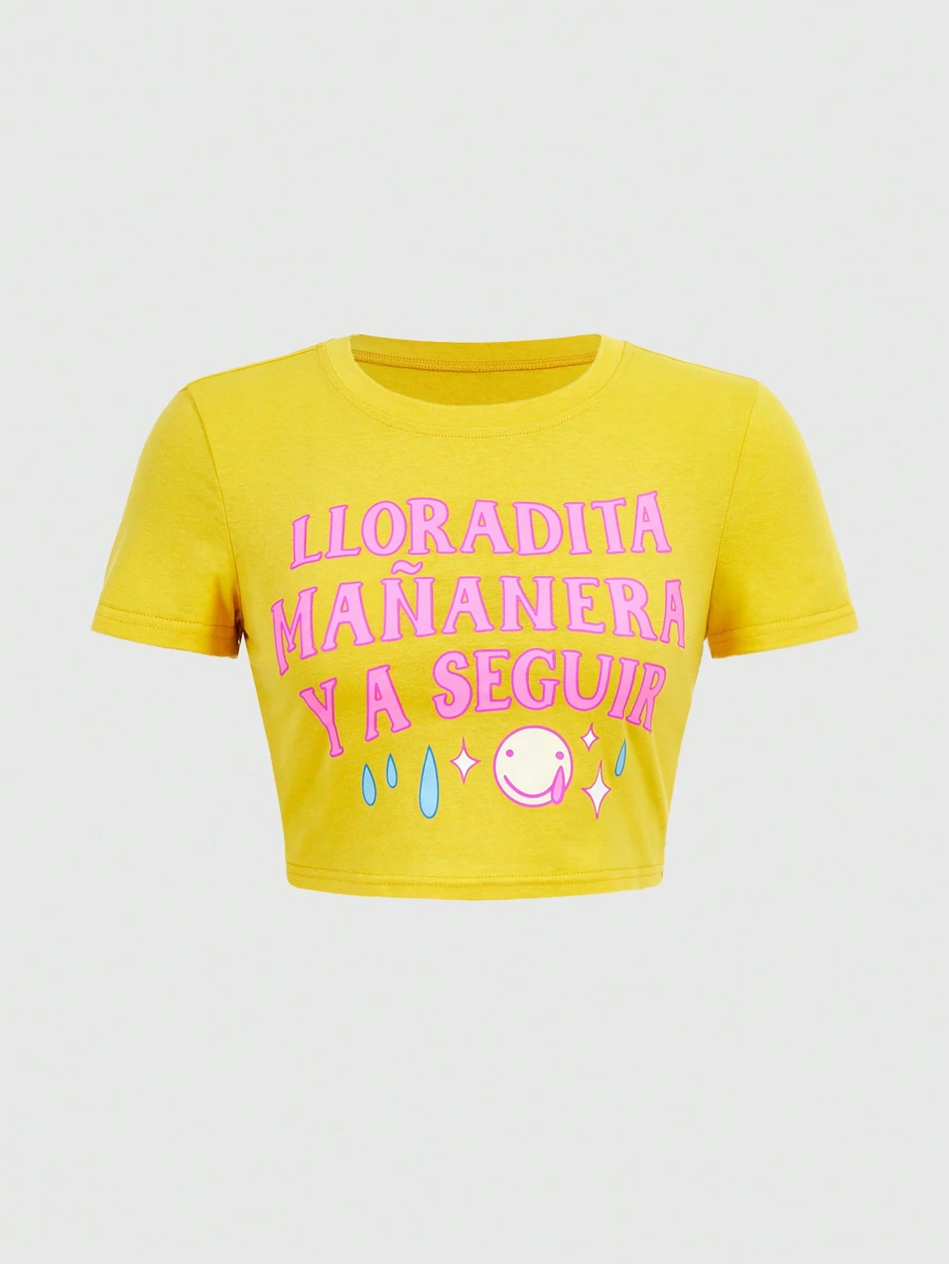 Lucia Types Crop T-Shirt mit Buchstaben Grafik,