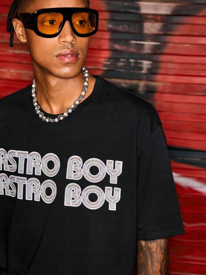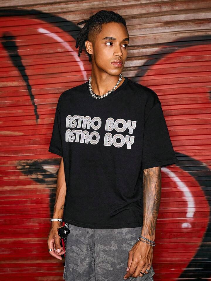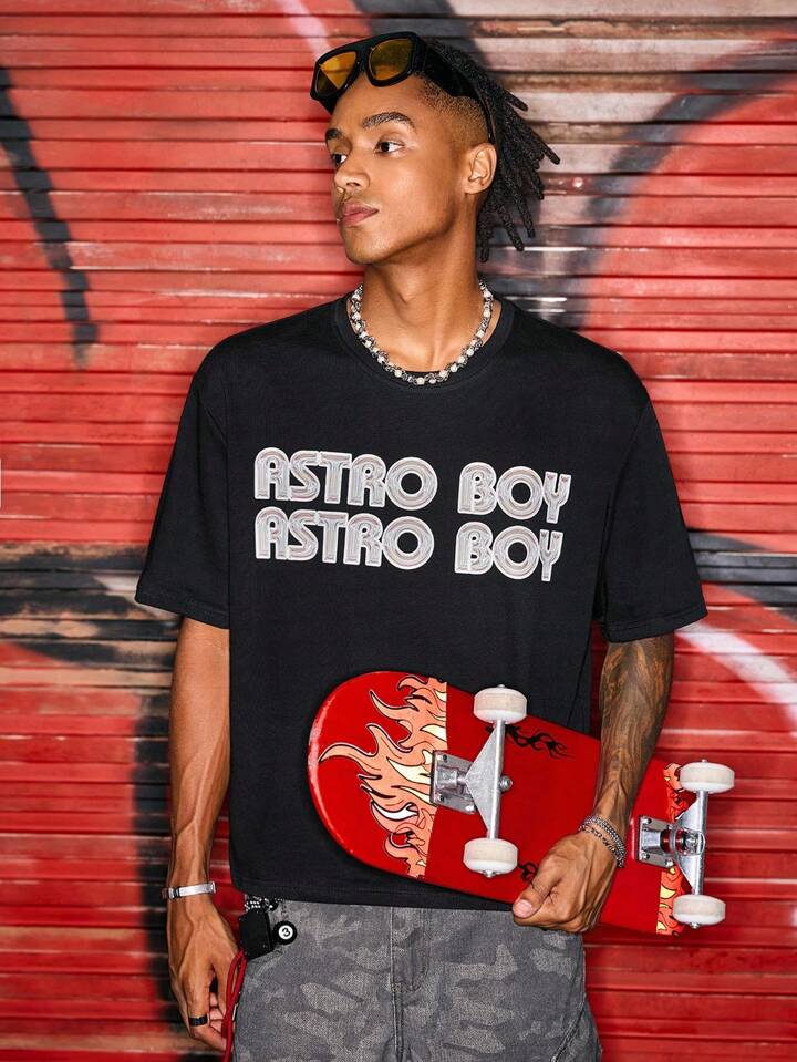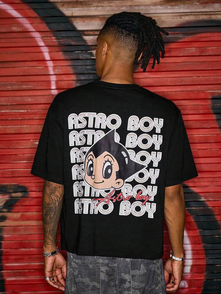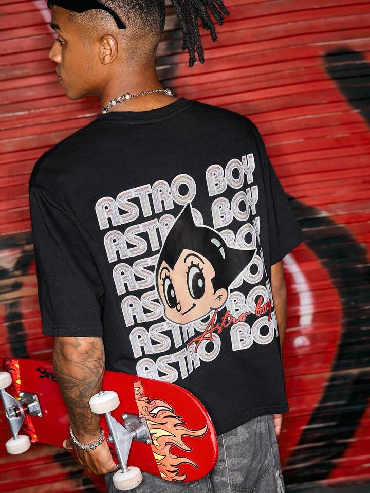Astro Boy X ROMWE Herren Y2K Cartoon-Grafik Kurzarm T-Shirt, Lässig Streetwear geeignet für Frühling & Sommer