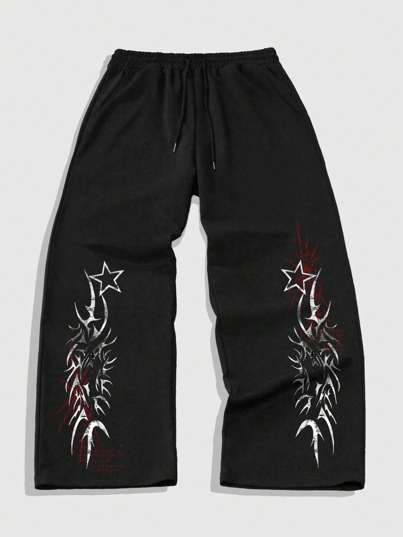 Street Life Herren Pentagramm Muster Kordelzug Taille Lässig Gerade Bein Jogginghose