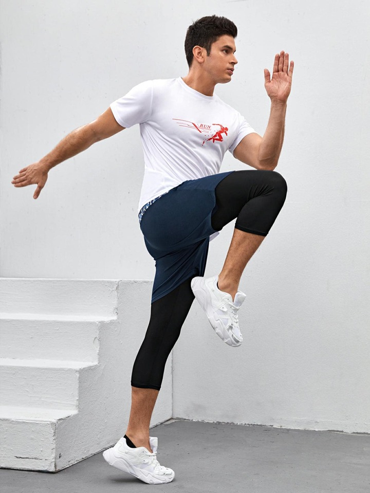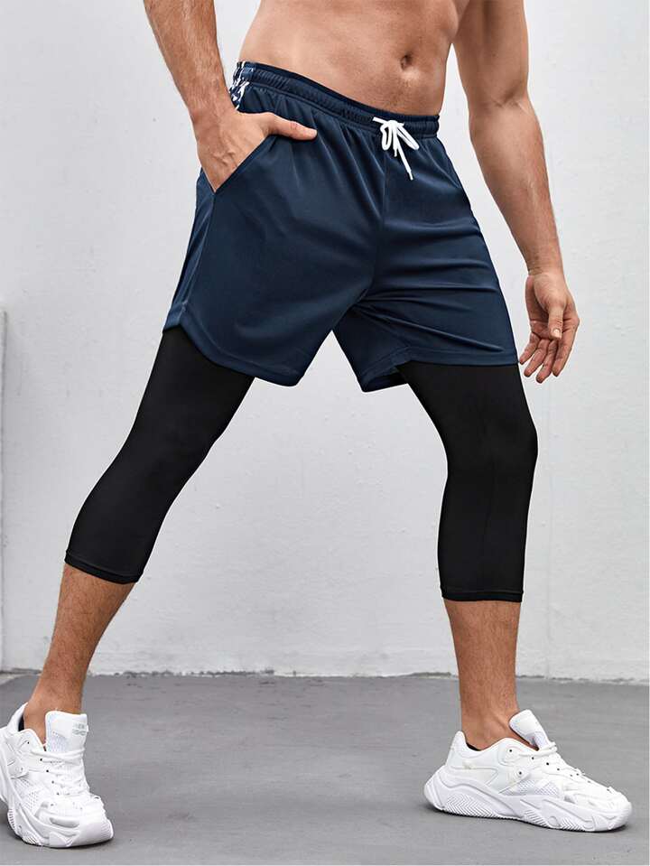 2 In 1 Yoga Leggings mit Kontrast Camo Muster und Schnürung