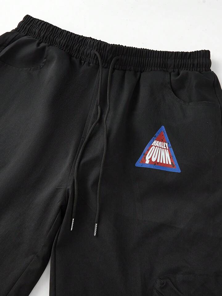 Harley Quinn | ROMWE Herren Cargo Hose im Streetwear Stil mit Cartoon Motiv, Buchstaben Muster, Kordelzug Taille, Reißverschluss Klapptaschen und weiter Passform