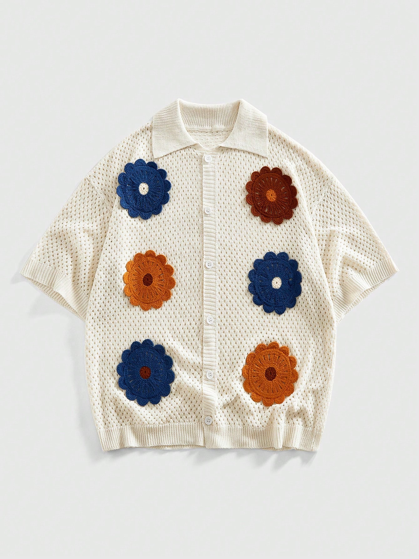 Herren 3D Blumenmuster Einfachknopf Lässiger vielseitiger Alltagspullover