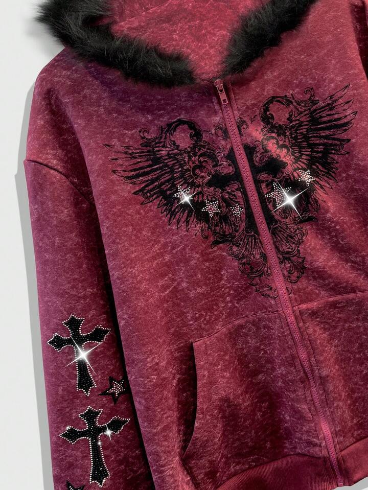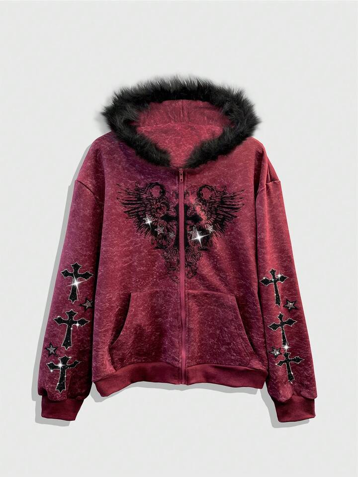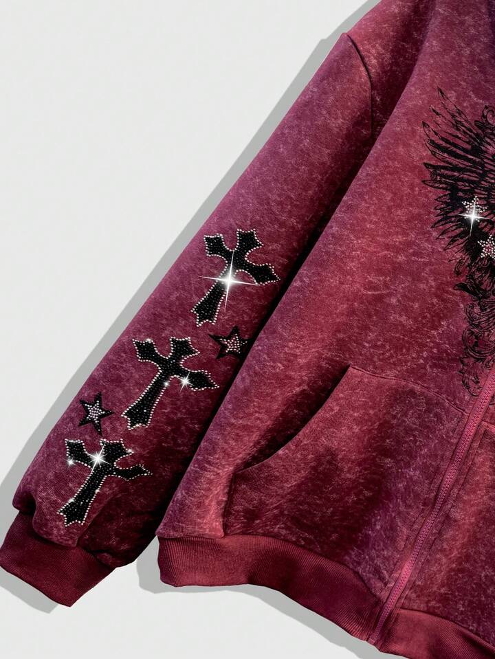 Goth Herren Herbst Streetfashion Kapuzenpullover mit Strass Kreuz Muster
