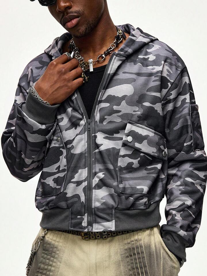Herren Herbst/Winter Camouflage Streetwear Lässig Reißverschluss Kapuzenpullover