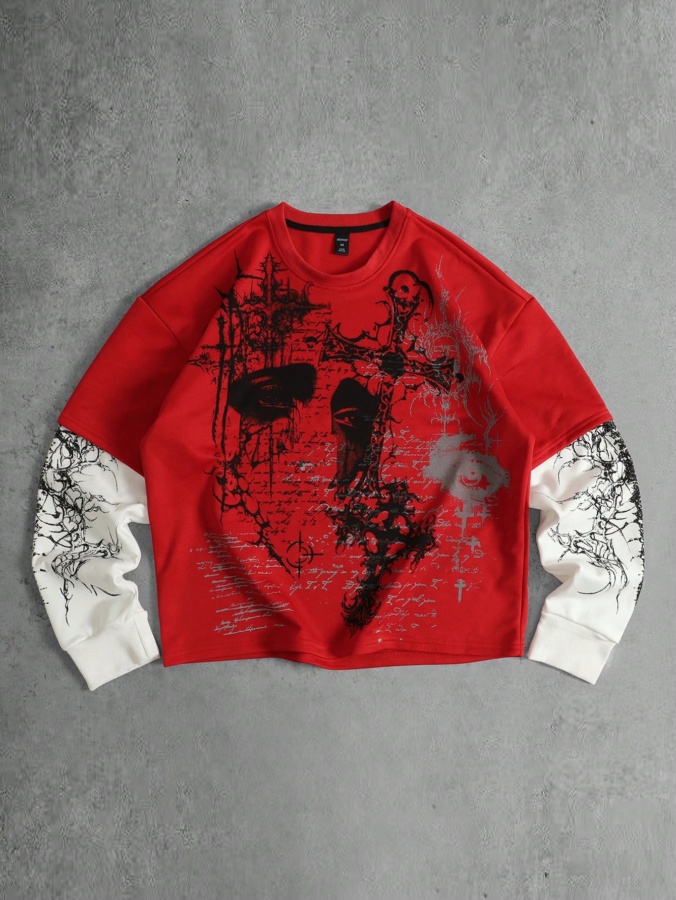 Herren Casual 2 in 1 bedrucktes Langarm T-Shirt