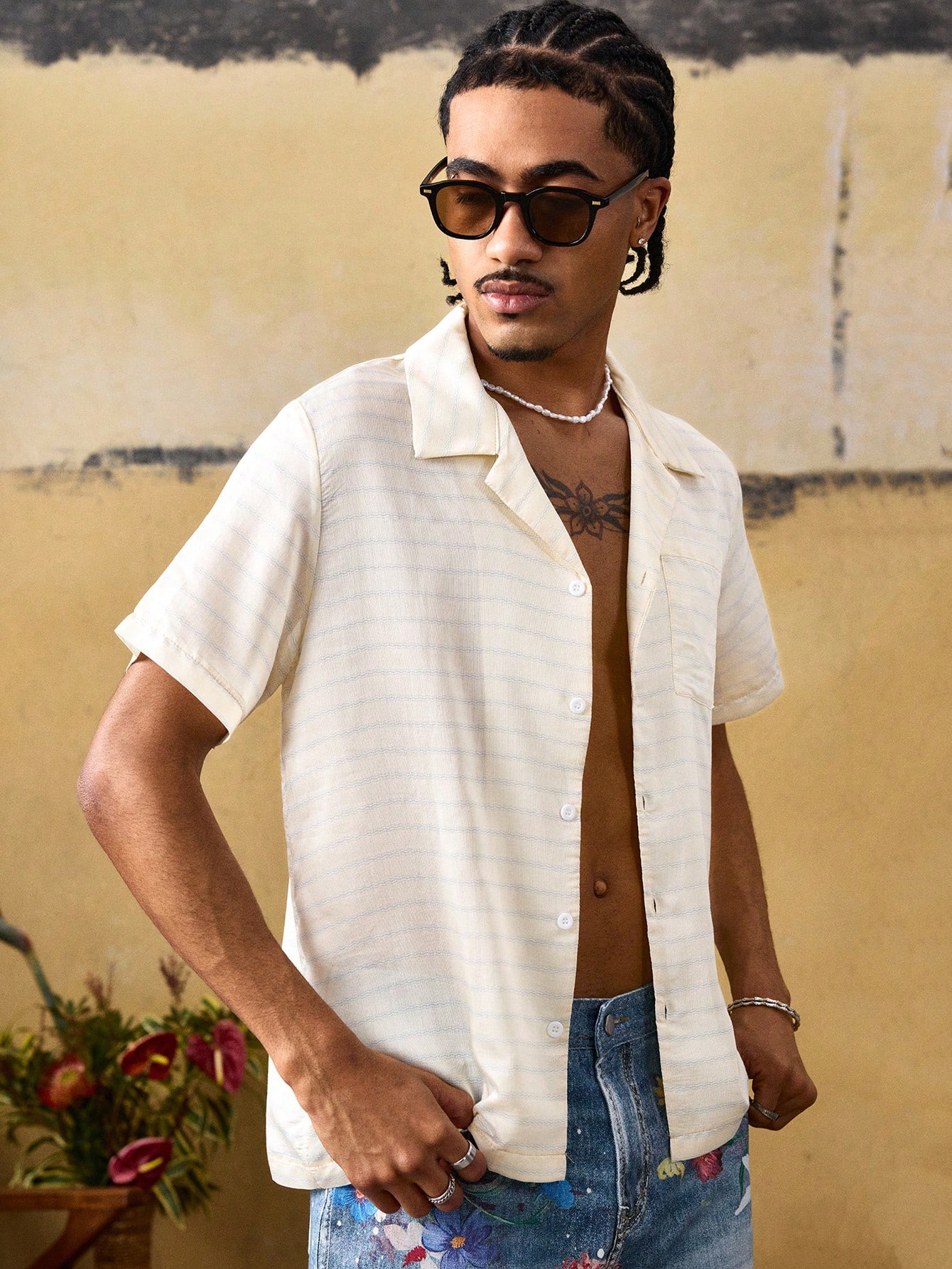 Herren Lässig Pendler gestreiftes Hemd mit Knöpfen