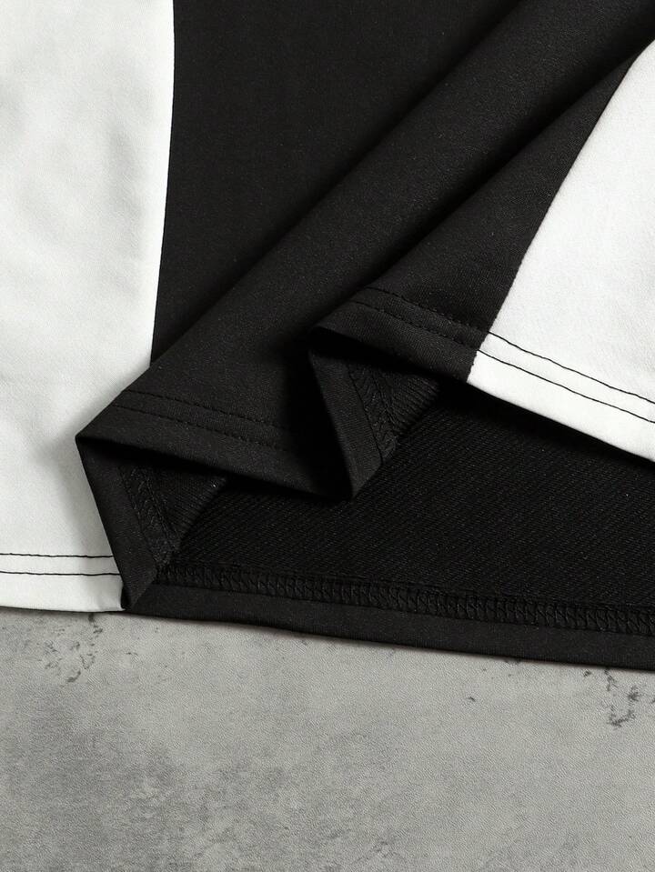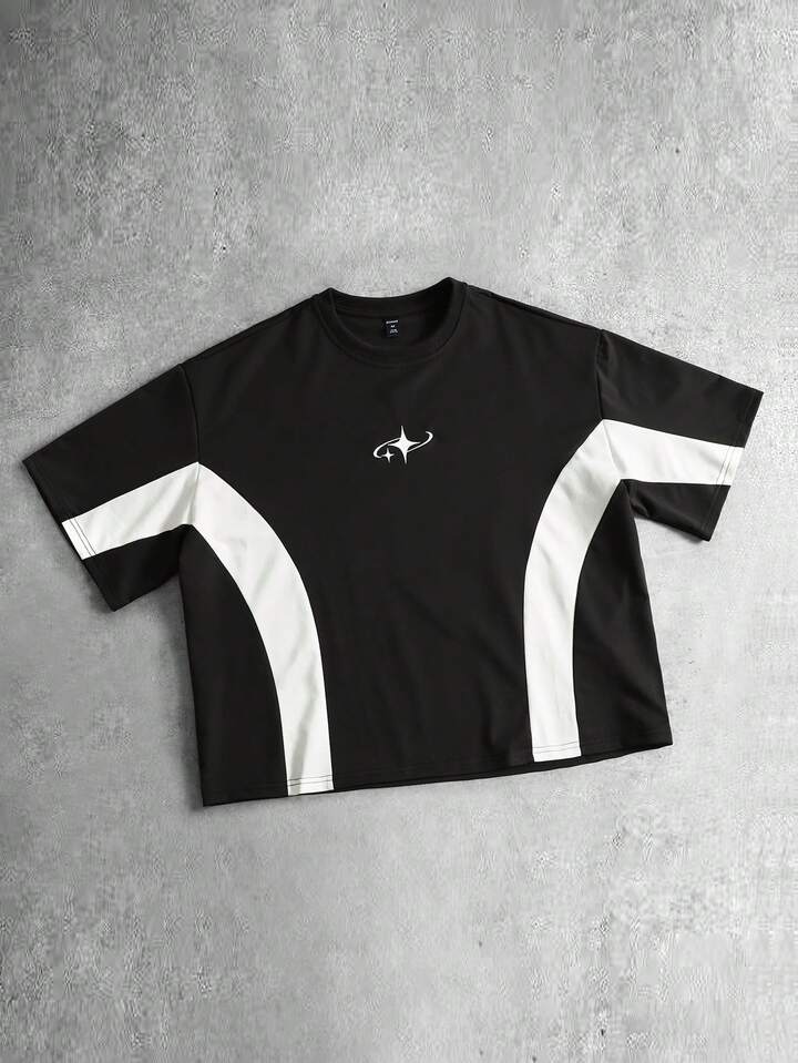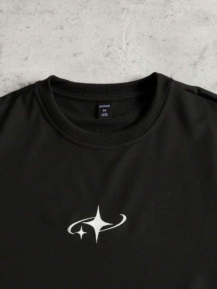 Herren Lässig Kontrastfarben Stern Stickerei Rundhals Kurzarm T-Shirt, Sommer