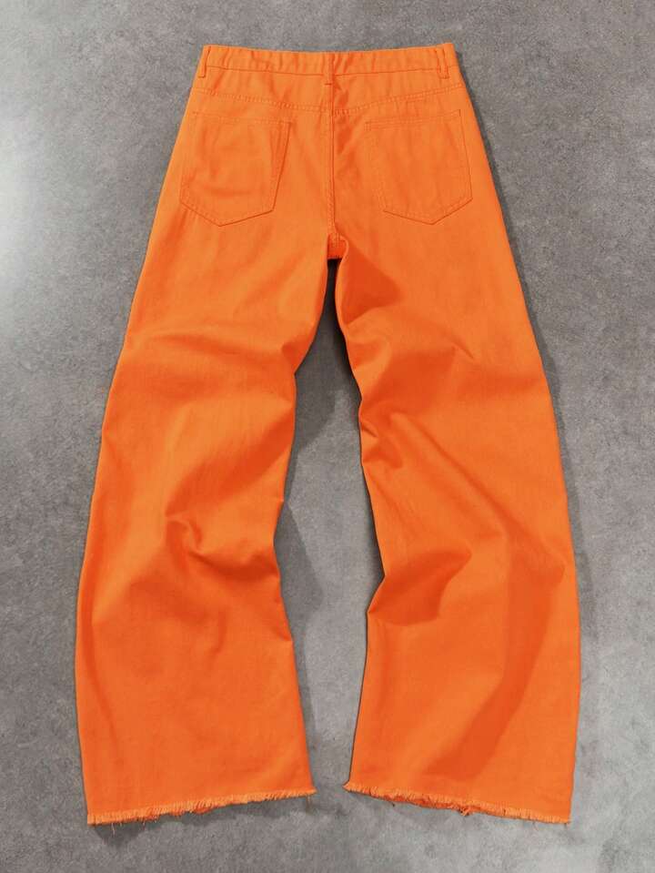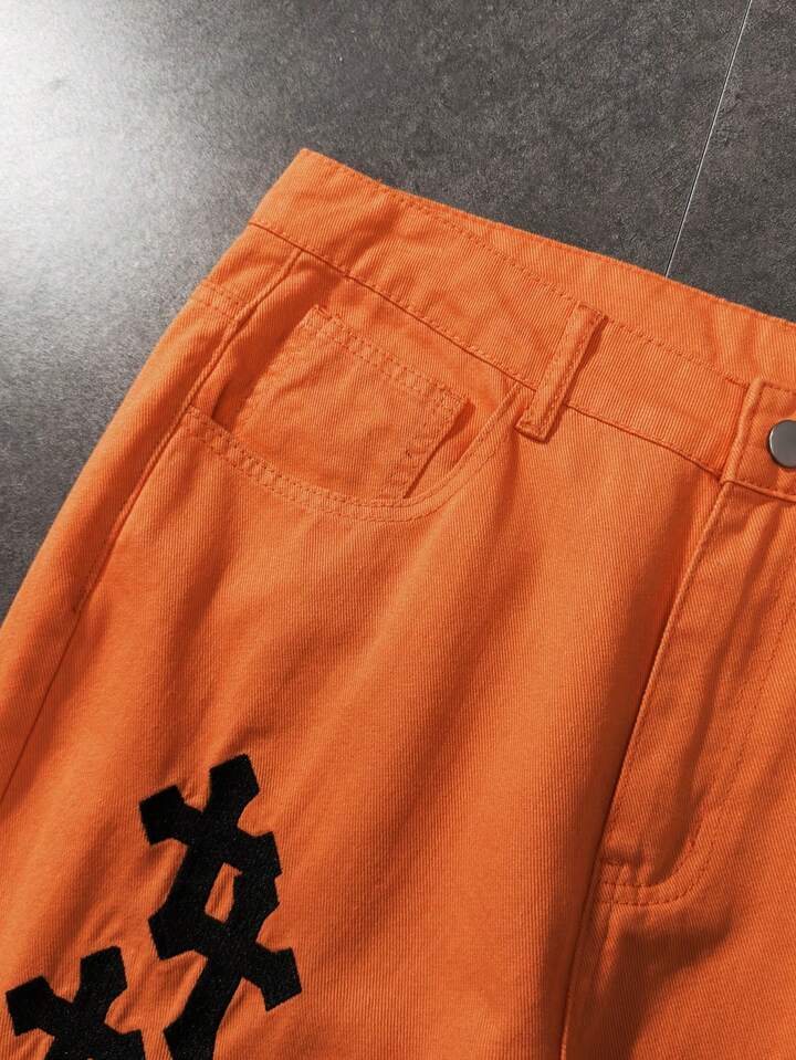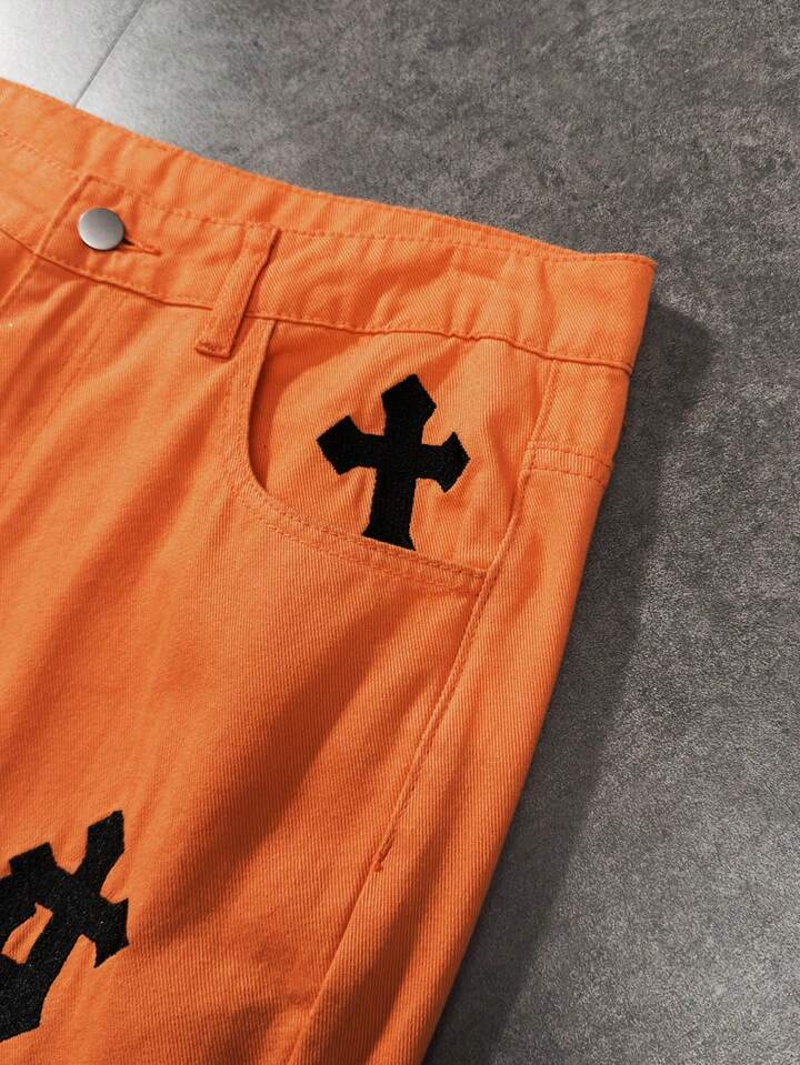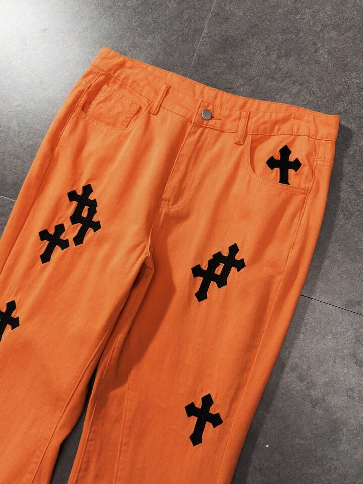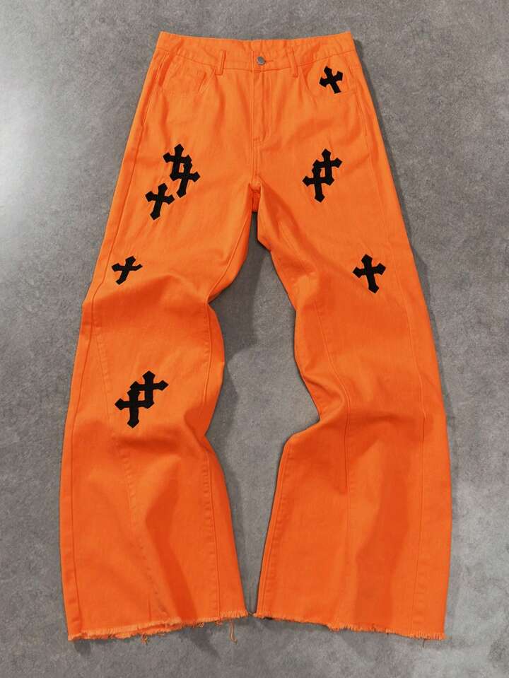 Herren Lässig Jeans mit Kreuz-Stickerei und weitem Bein