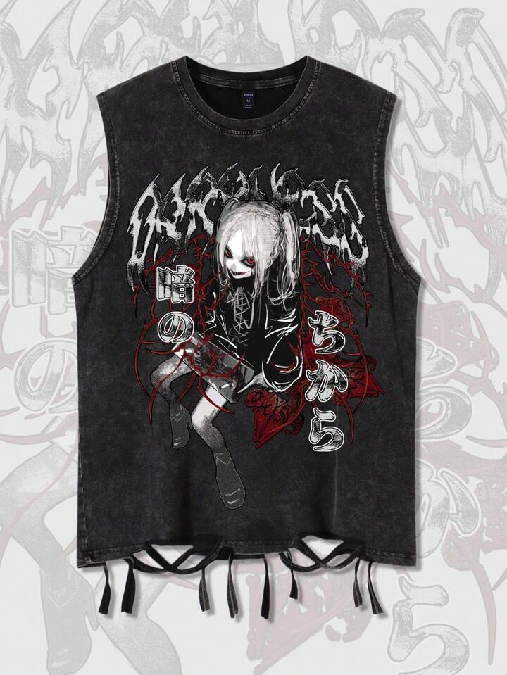 Lässiges Tank Top für Herren mit Anime-Charakter im Used-Look, ärmellos, Sommer