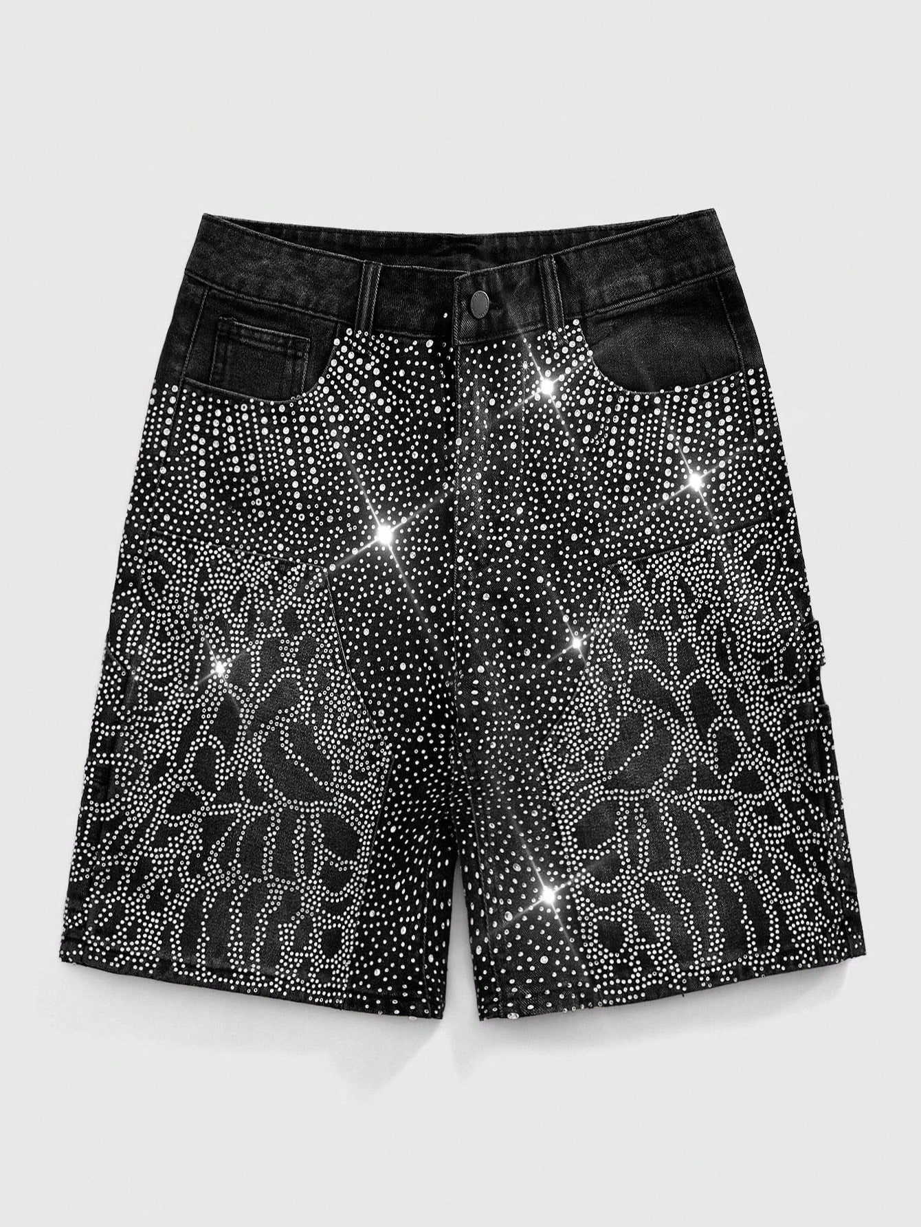 Herren Casual Fashion Street Jeans Shorts mit Strass Verzierung, Sommer