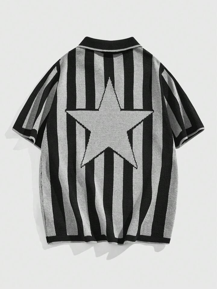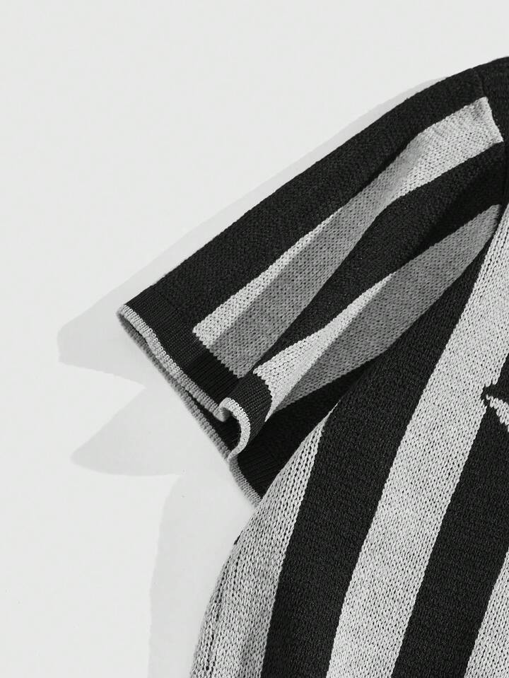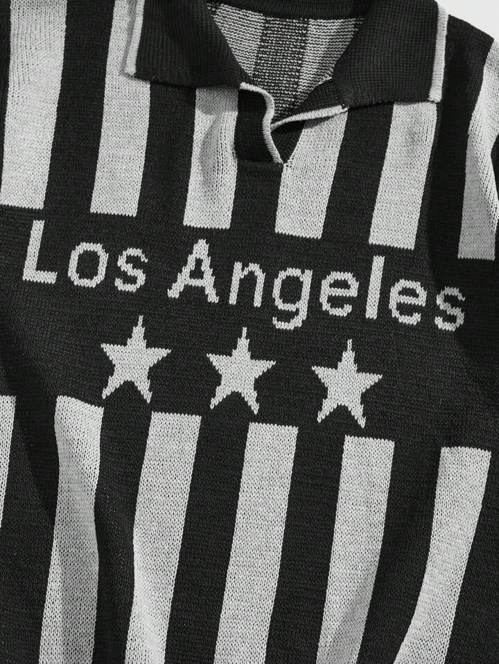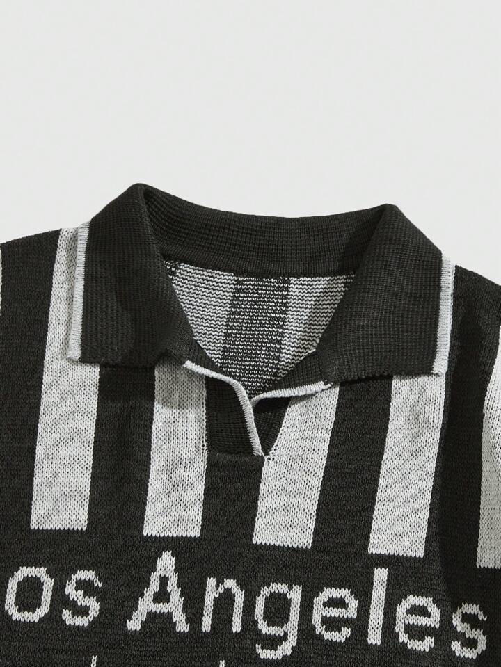 Lässig Pullover für Männer mit gestricktem Buchstabe Muster am Polokragen, geeignet für den täglichen Gebrauch im Frühling und Sommer