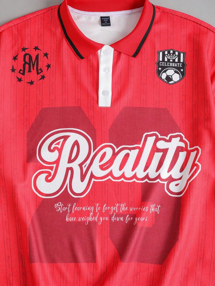 Herren Lässig Polo Shirt mit Slogan Aufdruck, Langarm, Herbst