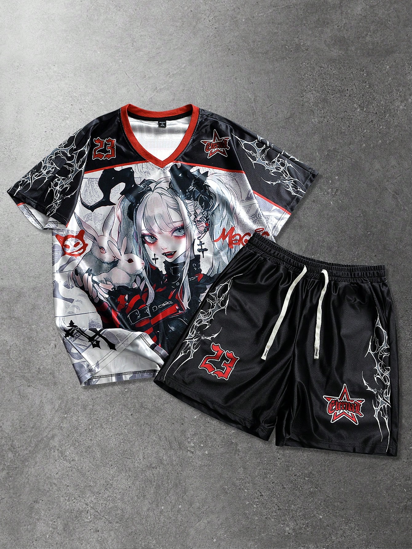 Herren Lässig Street American Comic Girl Muster T-Shirt und Shorts mit Kordelzug Set