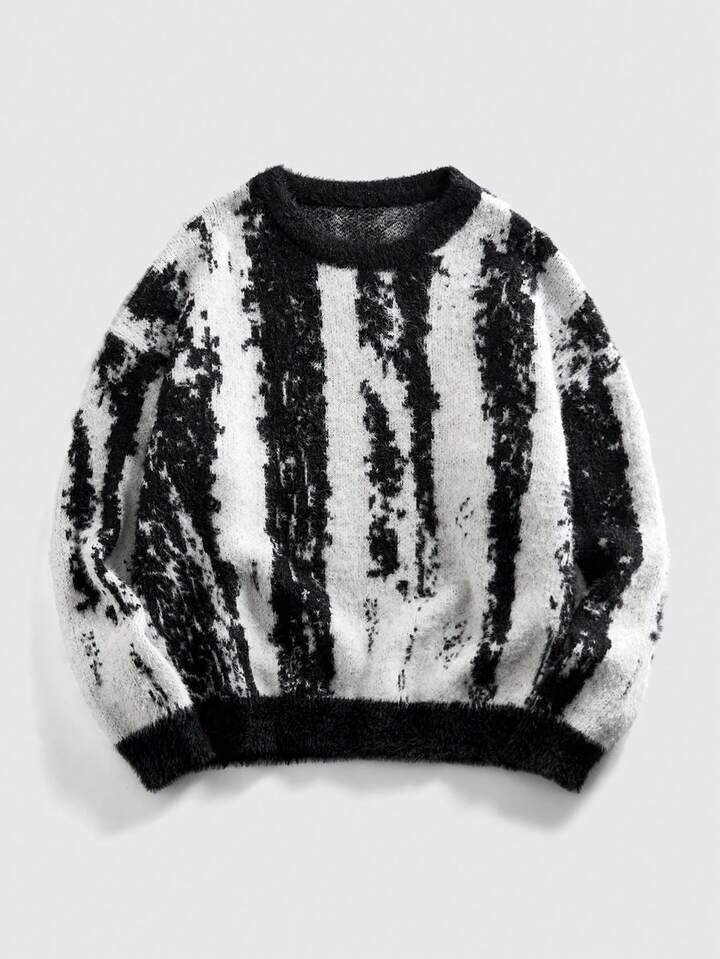 Herren Rundhals-Pullover im Stil der chinesischen Tuschmalerei, Retro