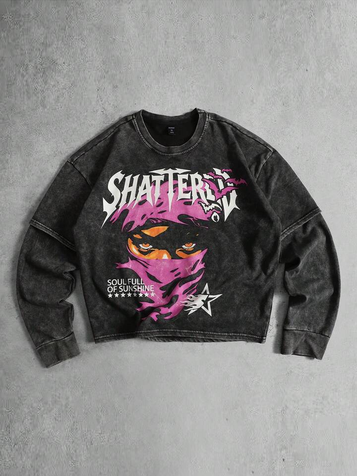 Herren Langarm T-Shirt mit Vintage-Muster