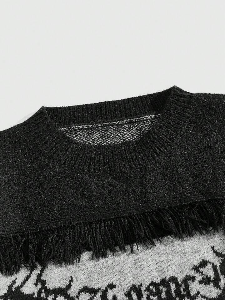 Herren Pullover mit Rundhalsausschnitt, Anime-Charakter Grafik und Quasten, Oversized Ärmel, für Herbst/Winter