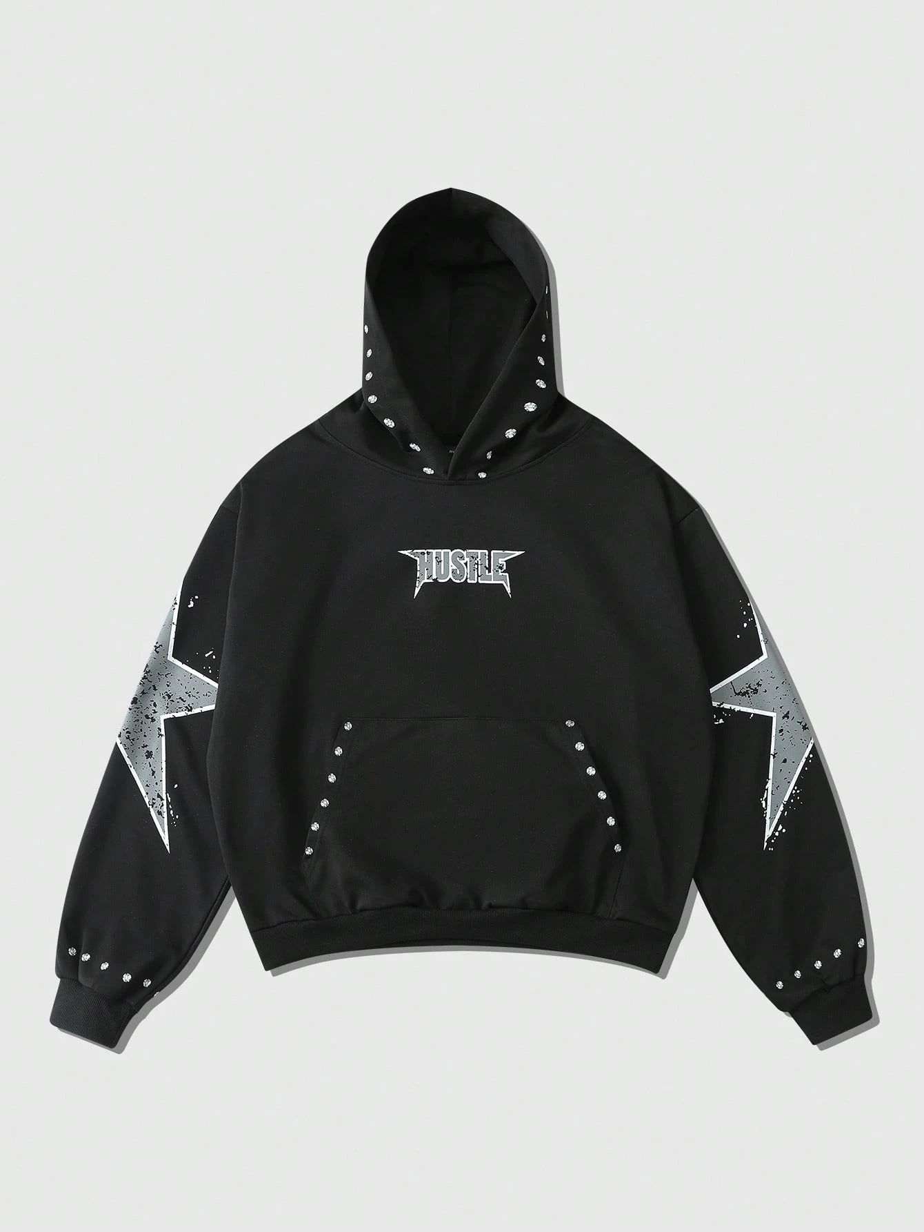 Herren modischer Kapuzenpullover mit Kordelzug und Fünfstern-Muster, Langarm