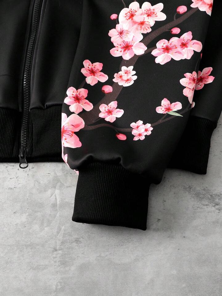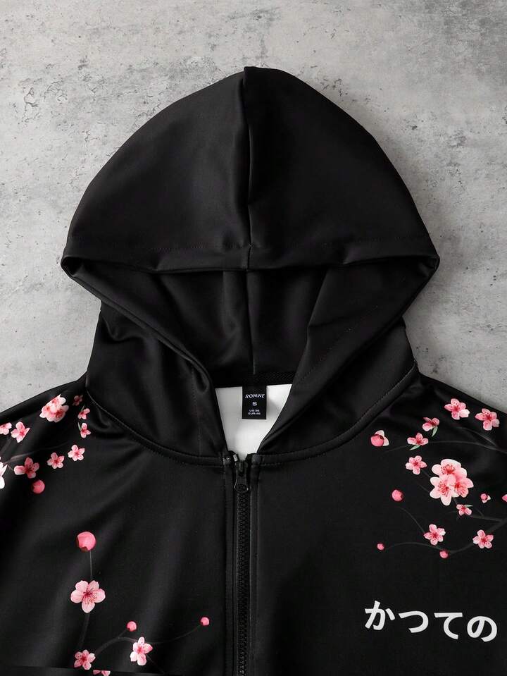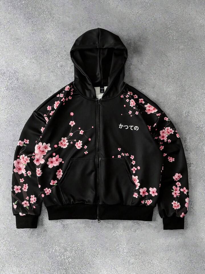 Herren Loose Sweatshirt mit Blume Muster, Retro Straßen-Stil