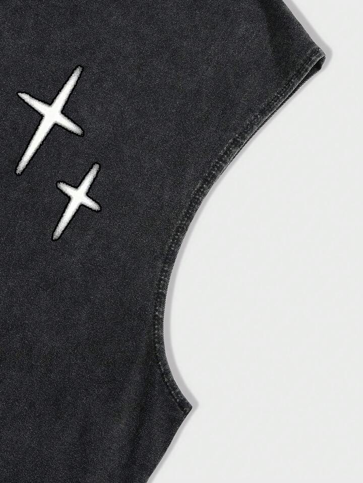 Herren Gothic Kreuz Muster Washed Schneeflocke Muster Trägershirt