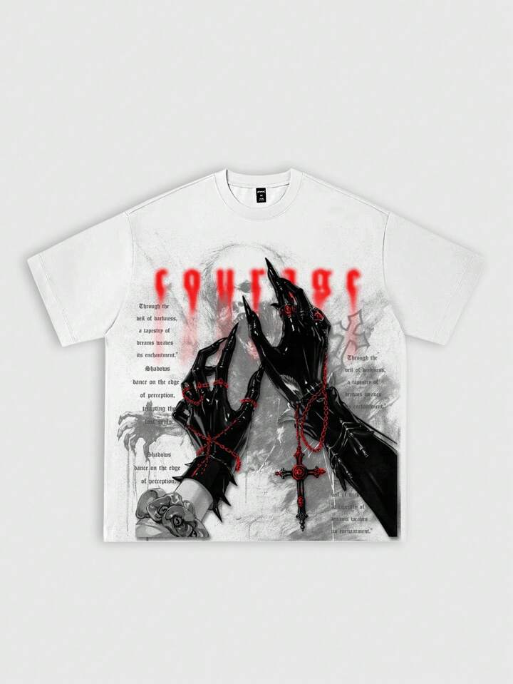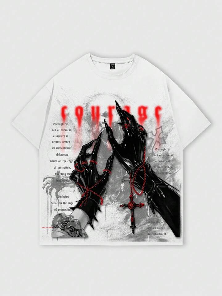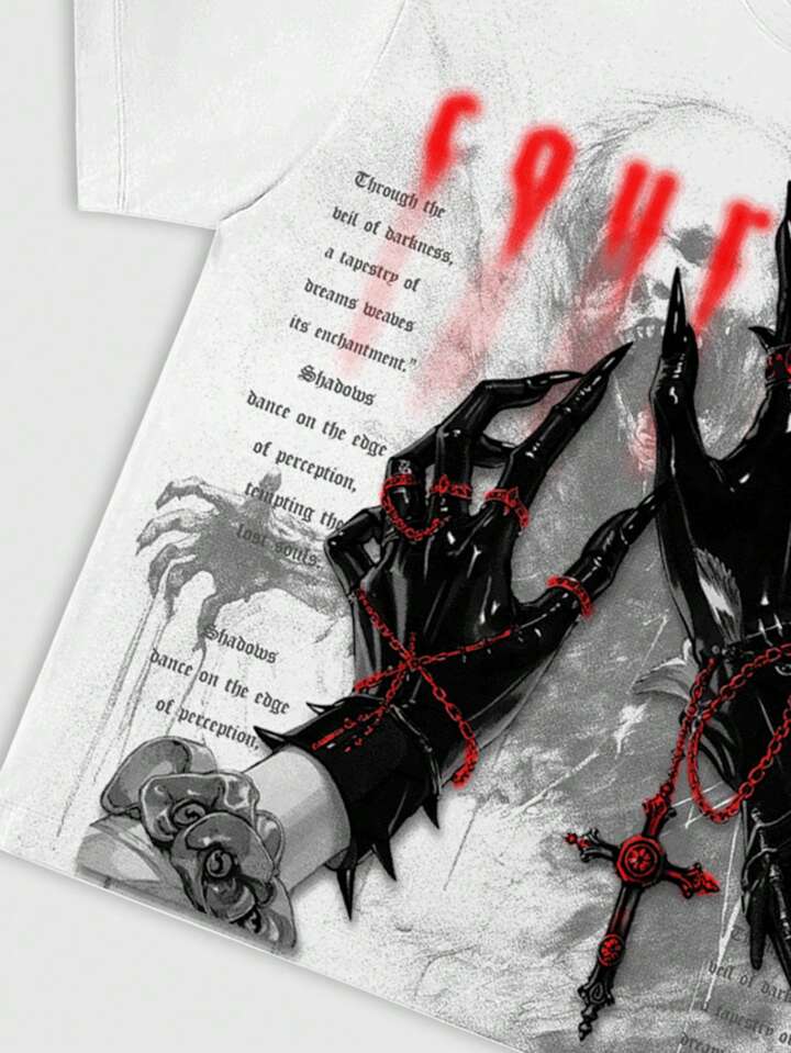 Herren Gothic Muster Rundhals Kurzarm Lässig T-Shirt, Halloween