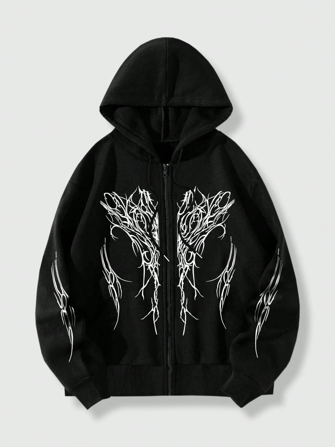 Herren Gothic Muster Reißverschluss Vorne Kordelzug Kapuzen Lässig Sweatshirt