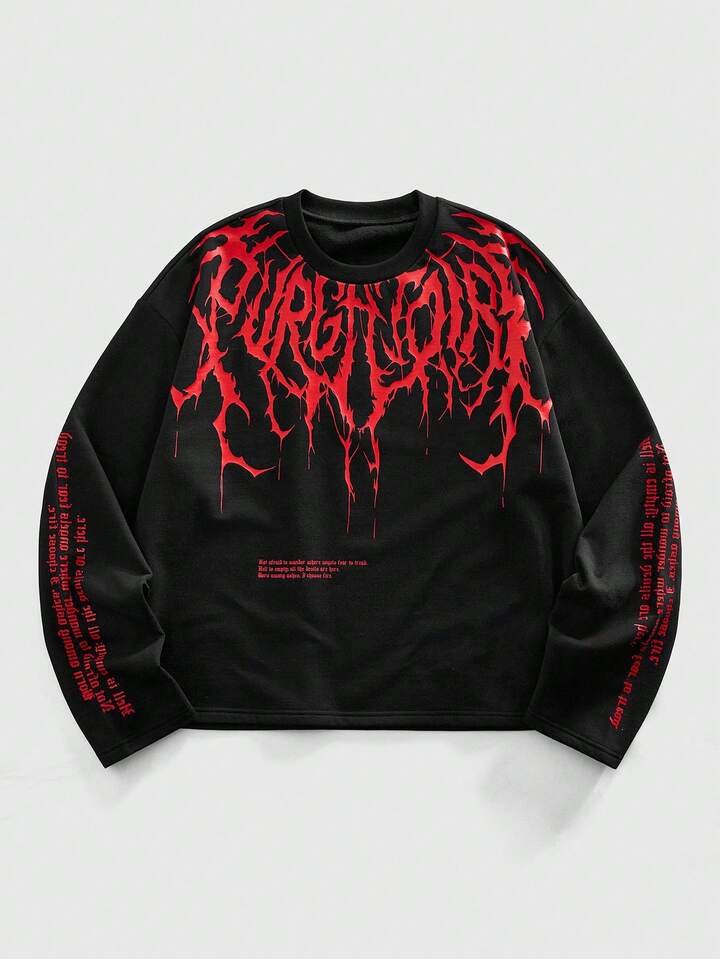 Herren Gothic Slogan Muster Langarm Sweatshirt