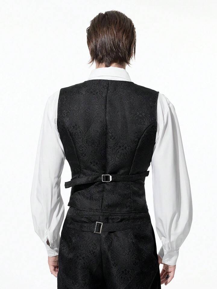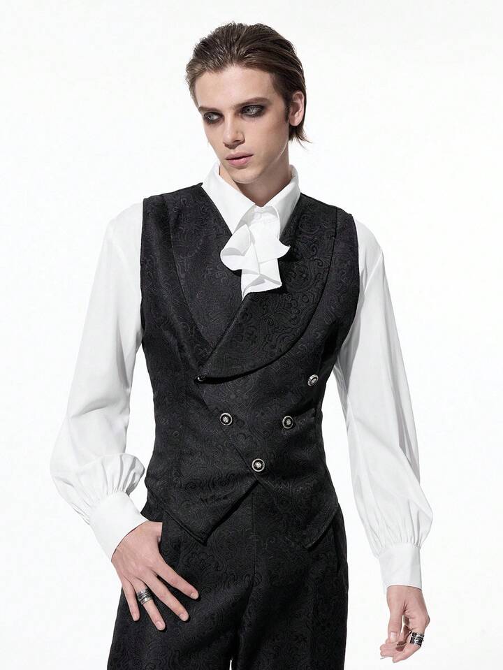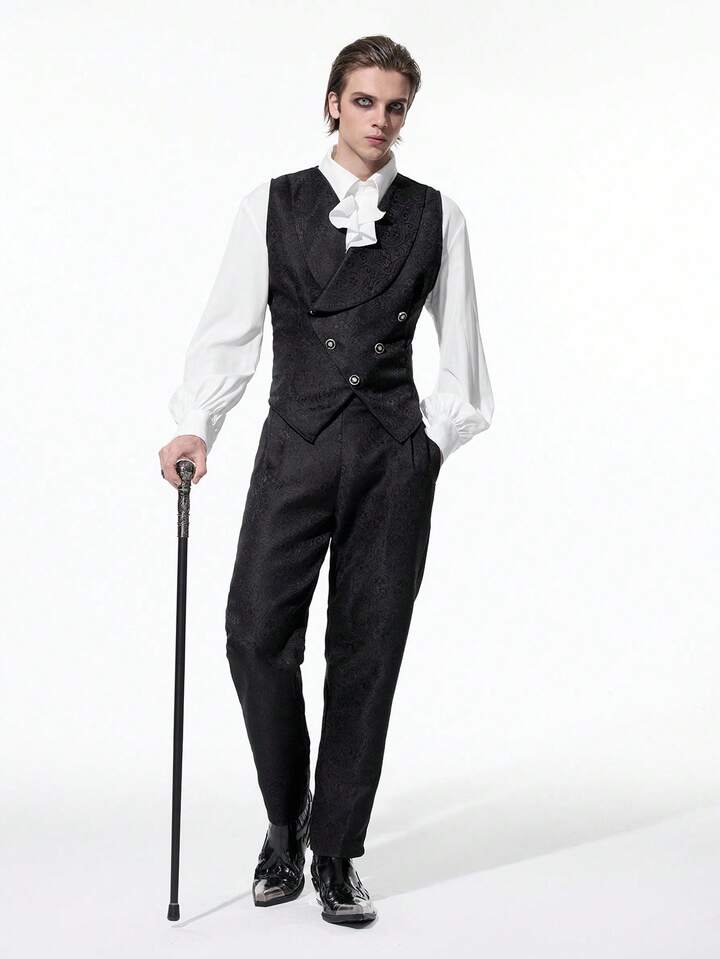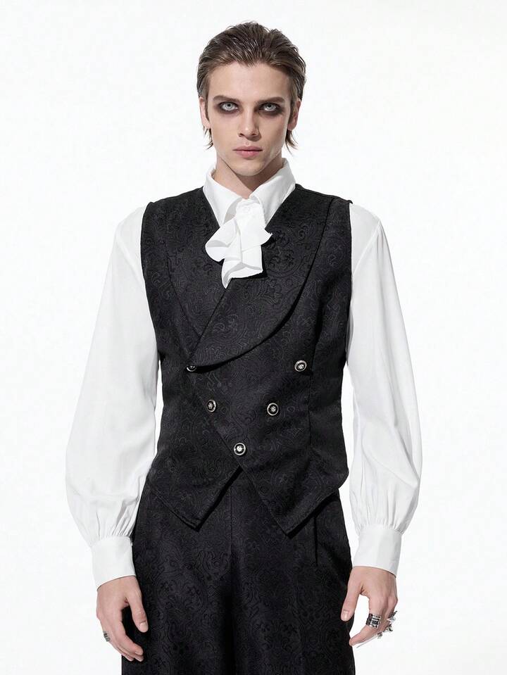 Herren Gothic Weste, Einzeltasche Knopf Schal Kragen Halloween, Herbst