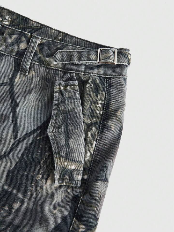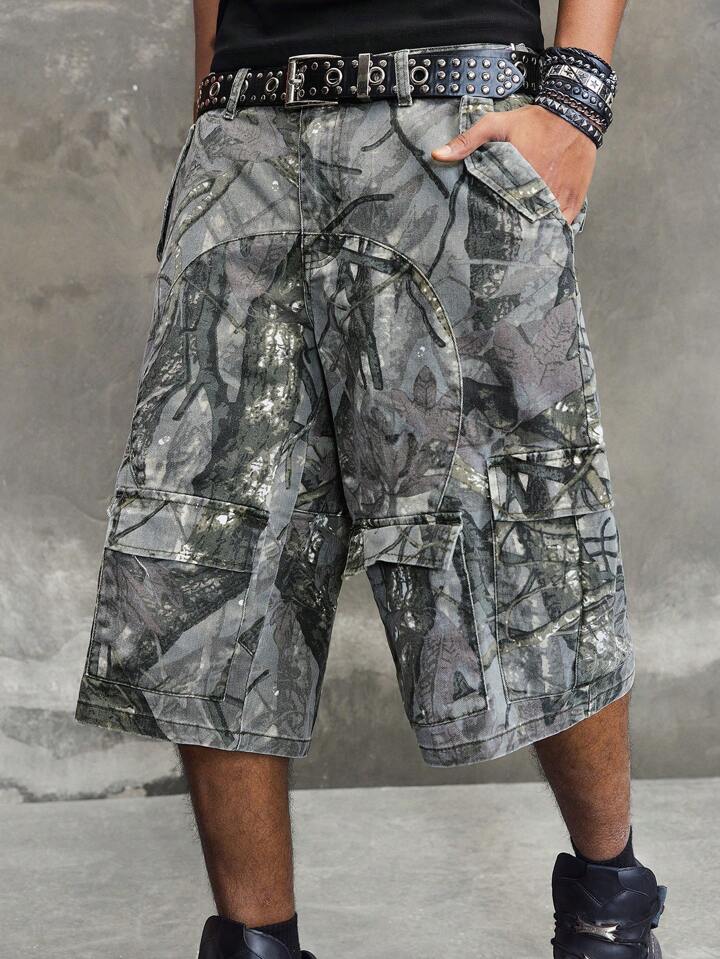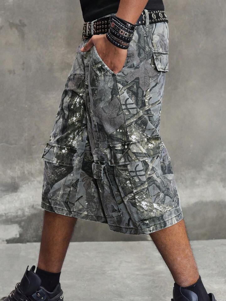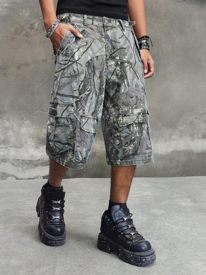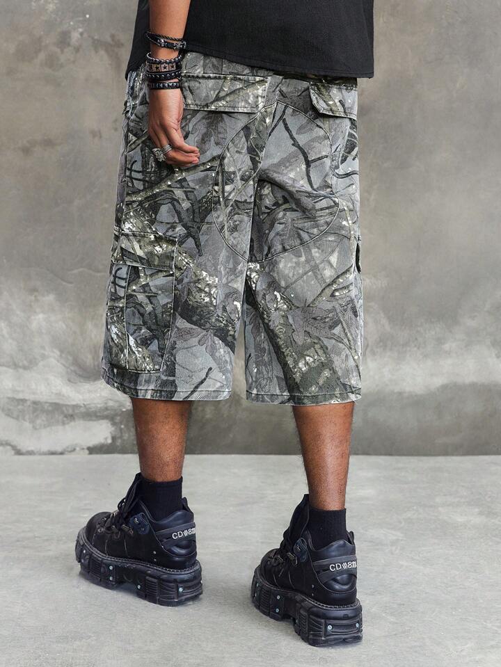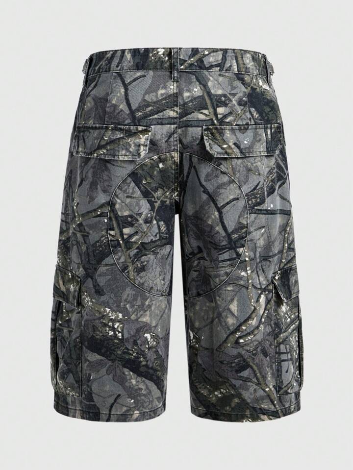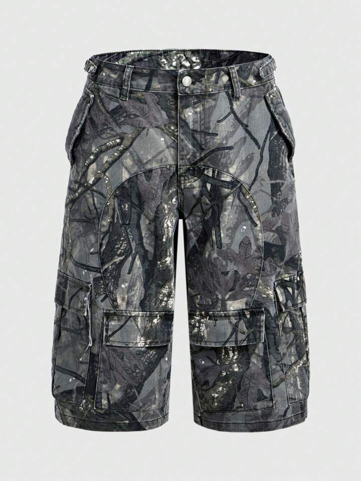 Herren Denim Shorts mit Zweig Muster und Cargotaschen, Lässig
