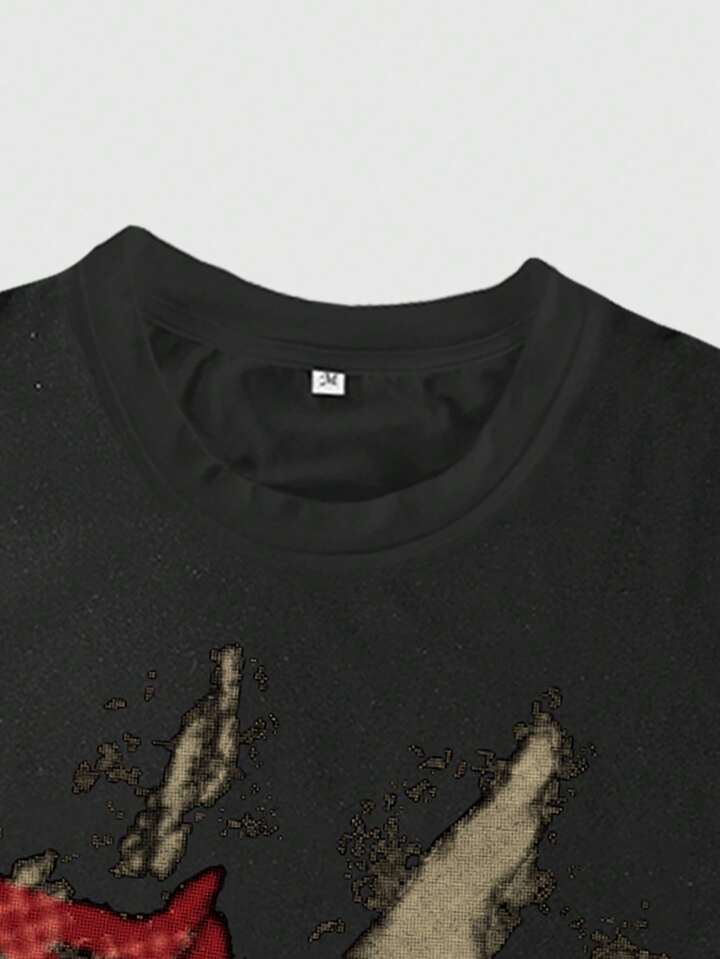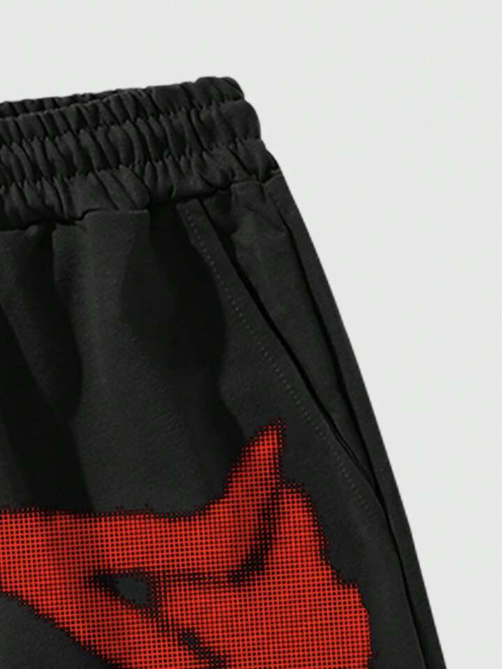 Grunge Punk Herren einfaches gesichtsbedrucktes Tanktop Set, modische Lässig Alltagskleidung