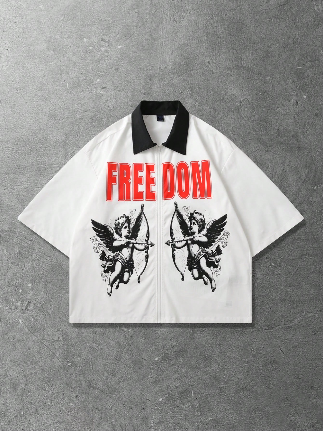 Herren Kurzarm Lässig Hemd mit Buchstaben- und Engelprint