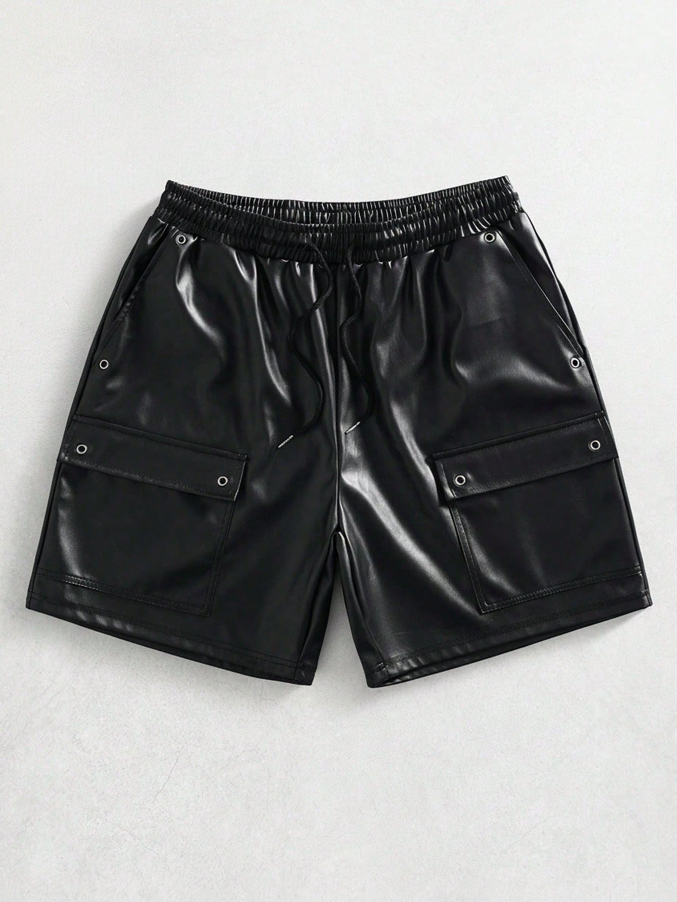 Herren Loose Shorts mit Kordelzug Taille und Cargo Taschen aus PU-Leder