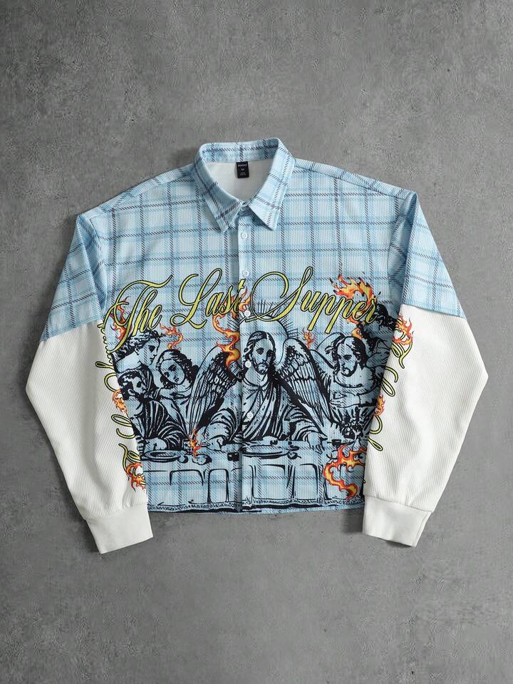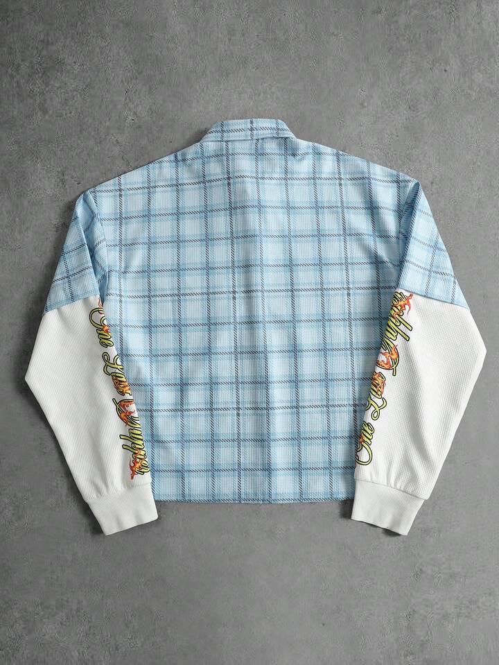 Herren Loose Fit 2-in-1 Karohemd mit Langarm und Doppellagigen Ärmeln