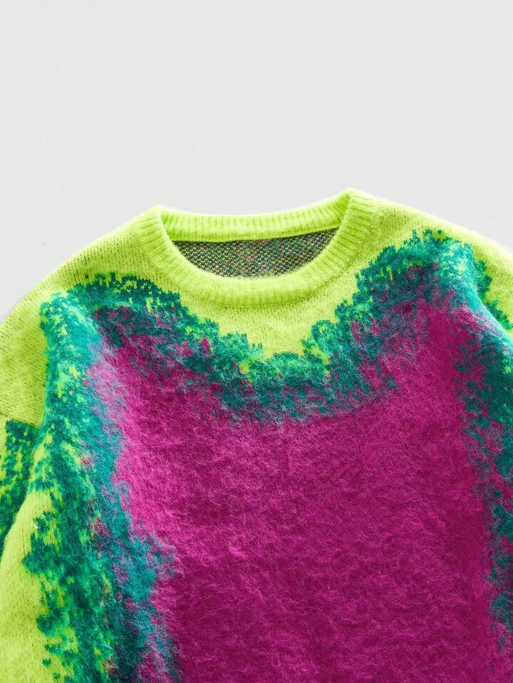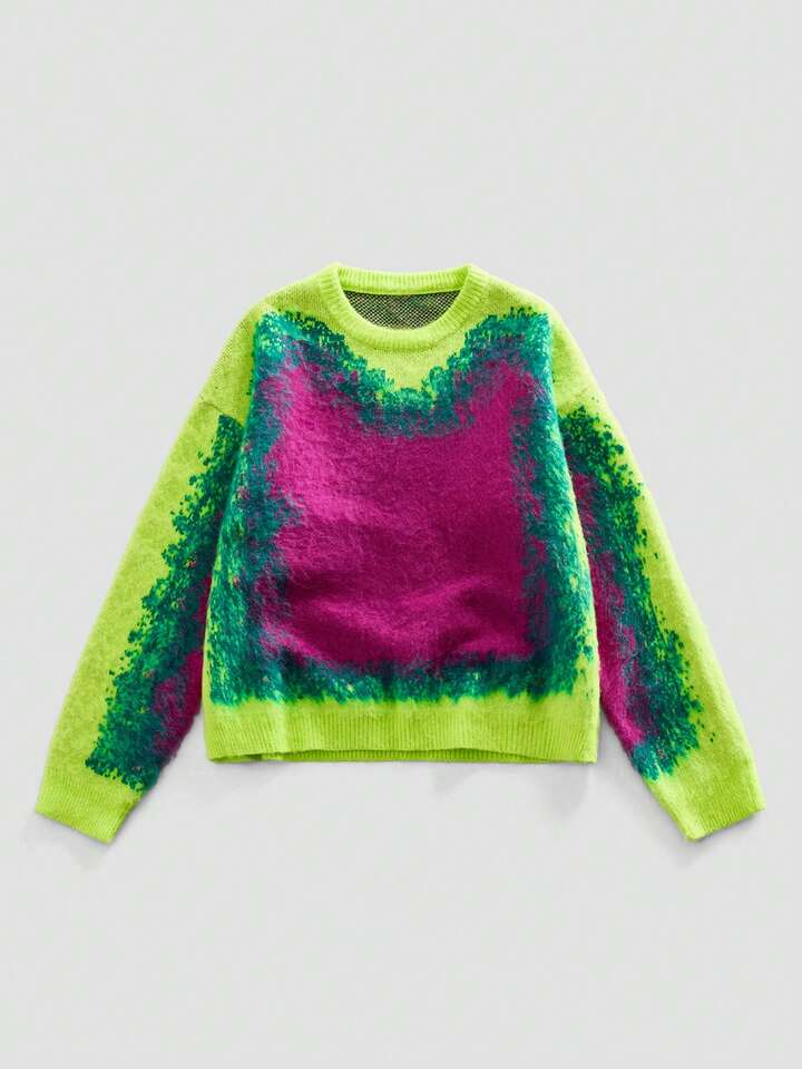Herren Loose Fit Rundhals Jacquard Strick Langarm Pullover