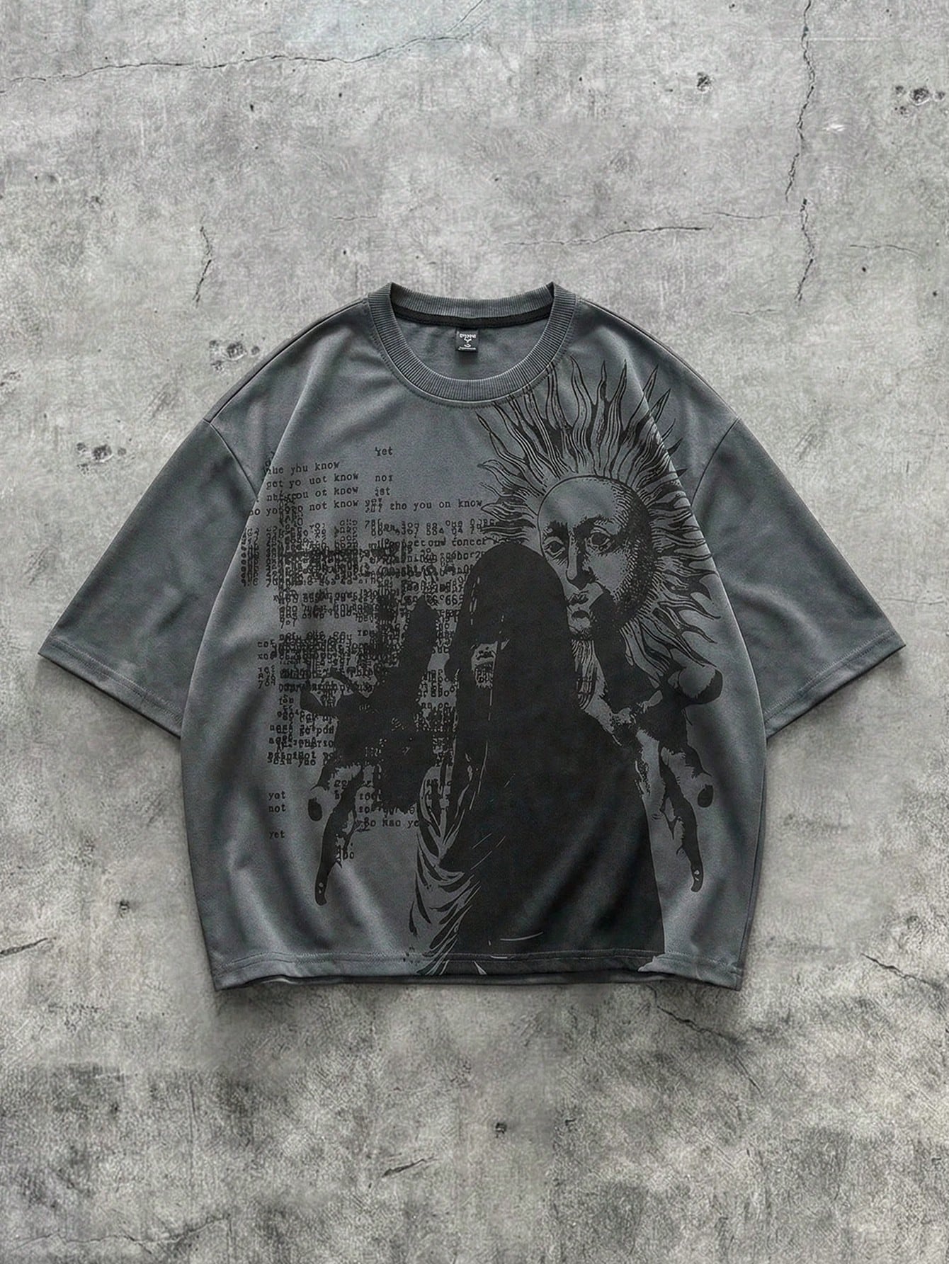 Herren Loose Fit Oversize Kurzarm T-Shirt mit Aufdruck