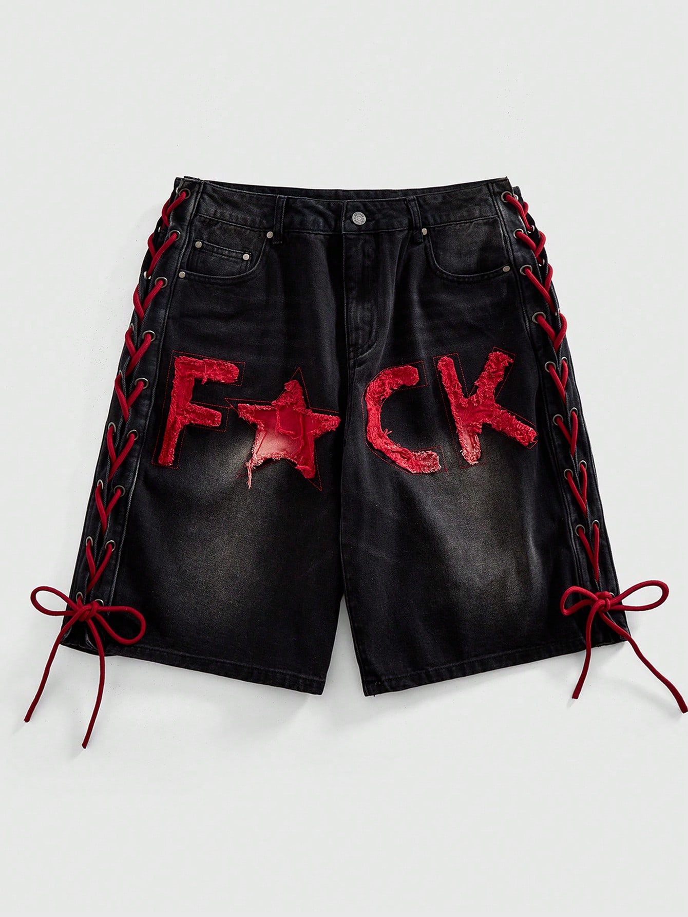 Herren Loose Fit Jeans Shorts mit Stickerei