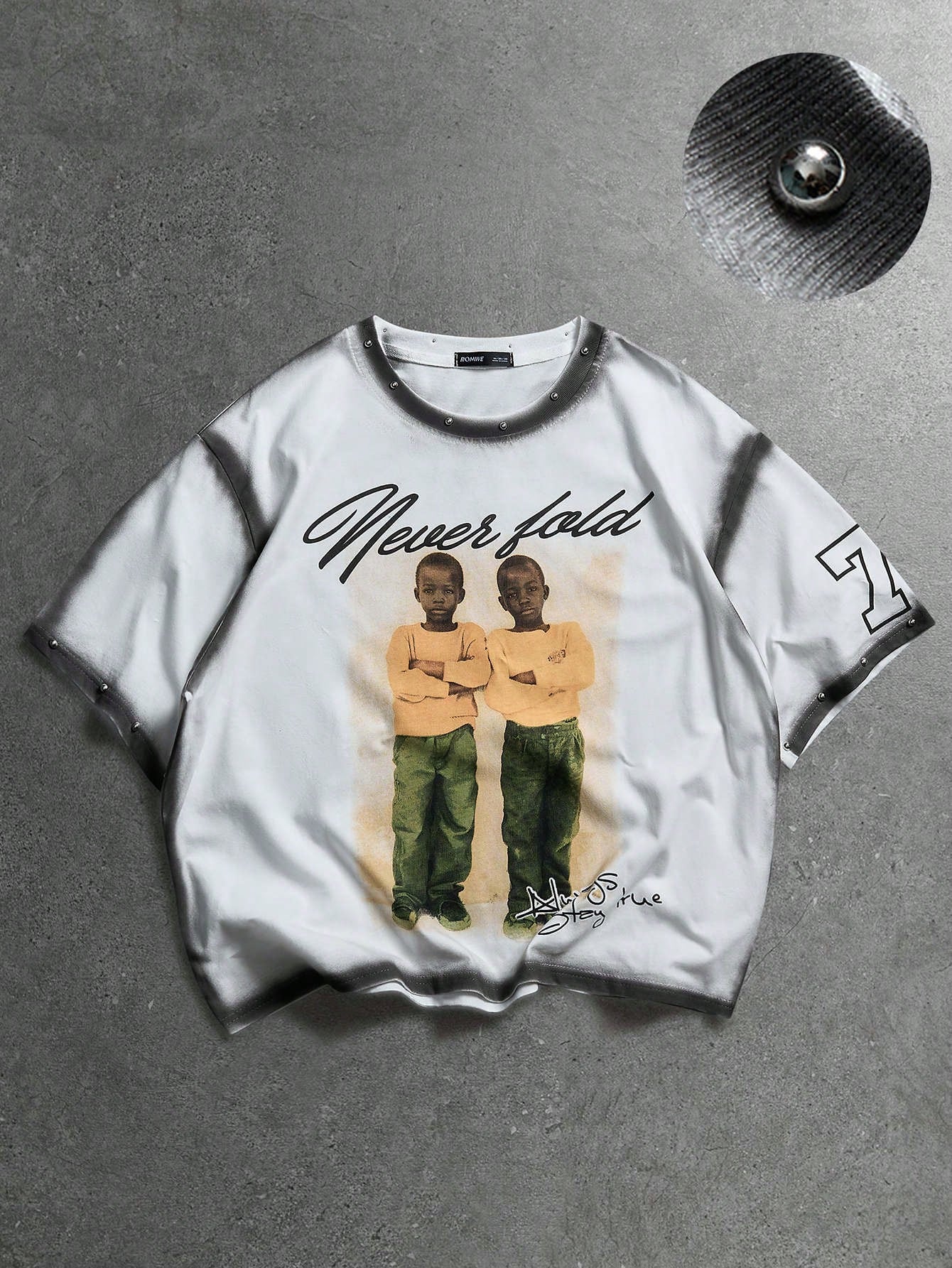 Herren Loose Fit Spray Färbung Trim Kurzarm T-Shirt