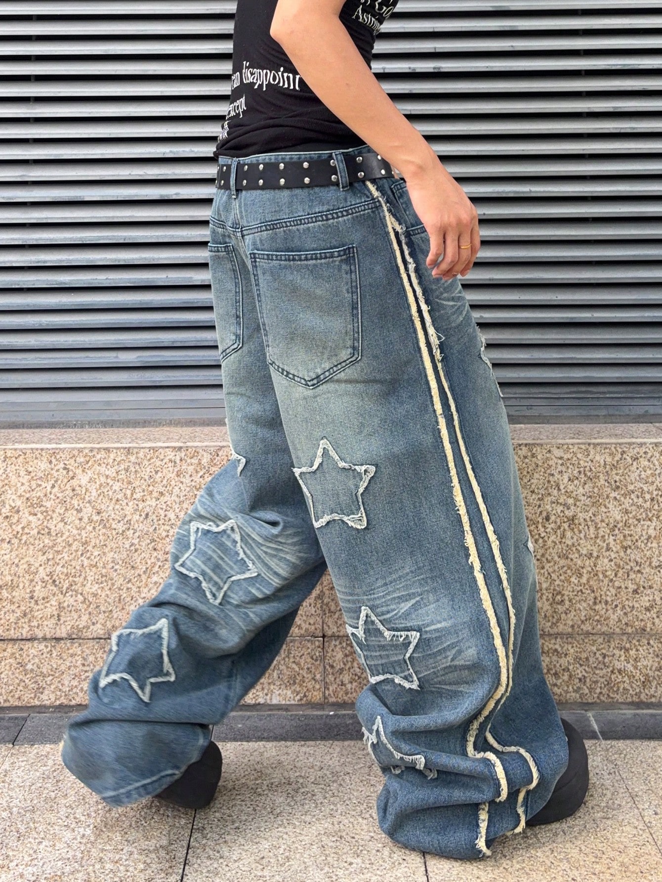 Herren Loose Fit Jeans mit Sternstickerei