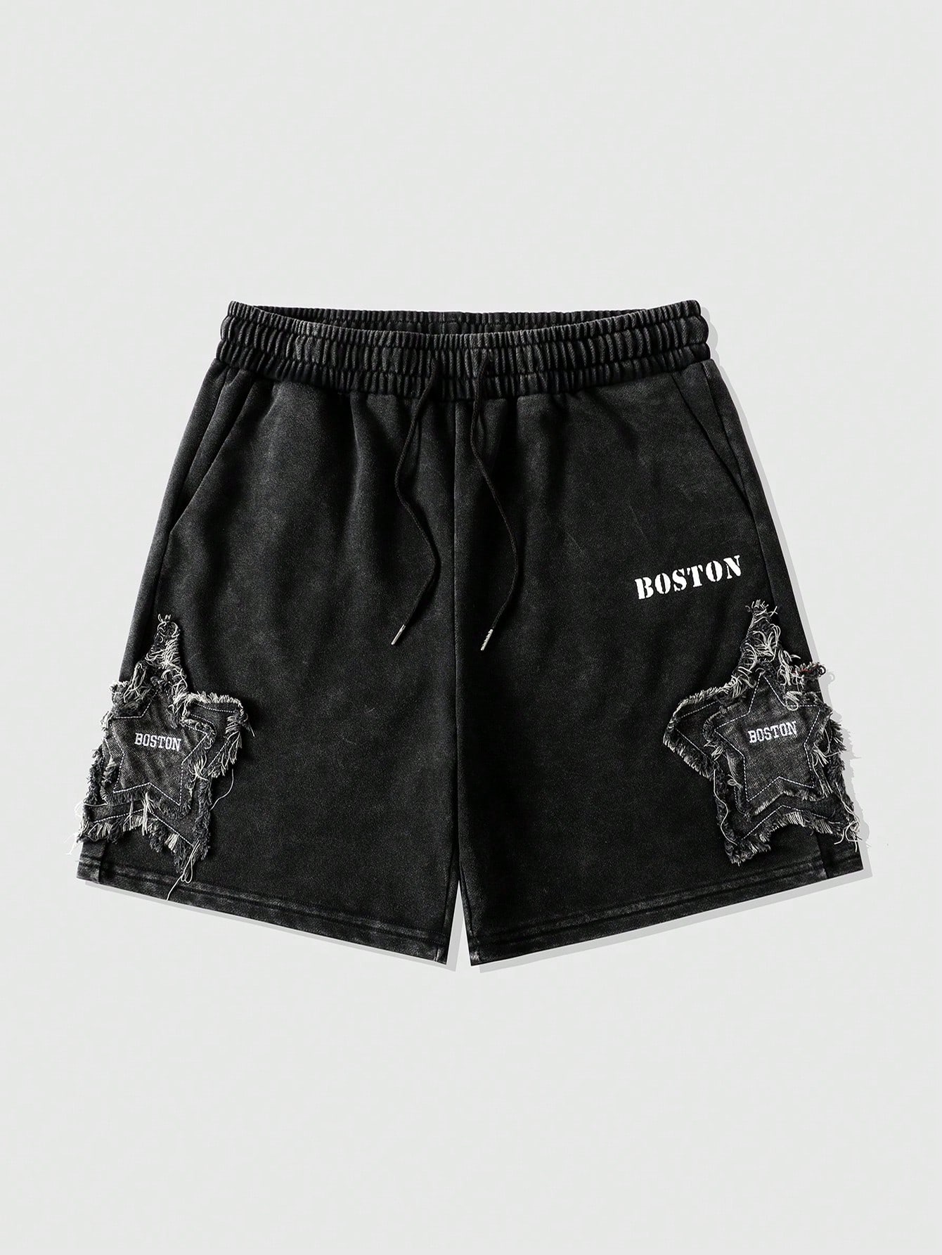 Herren Loose Washed Shorts mit Sternstickerei