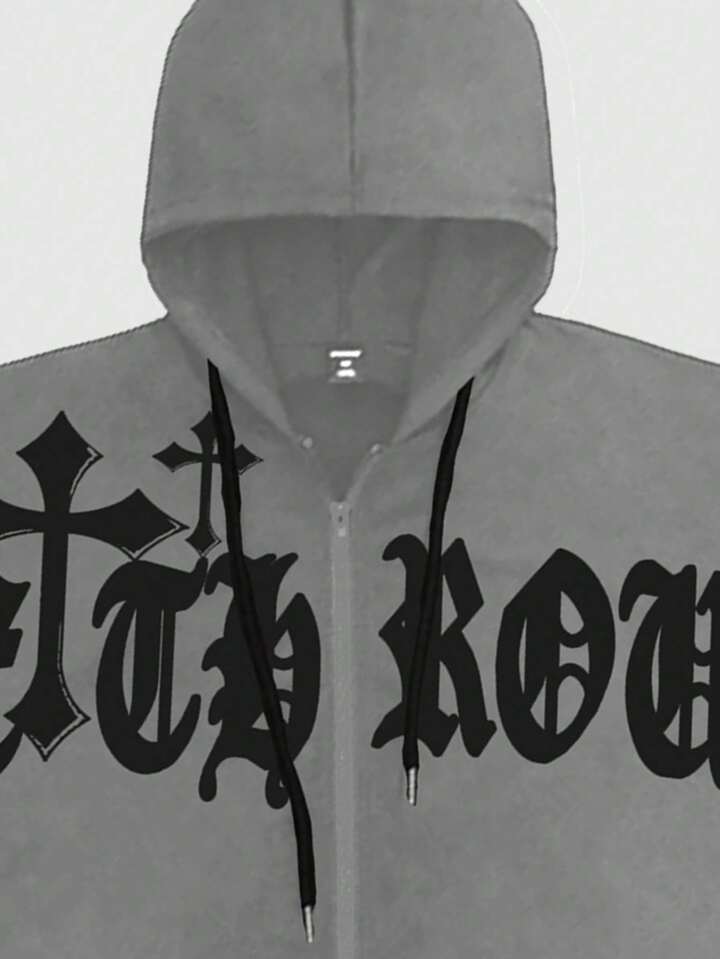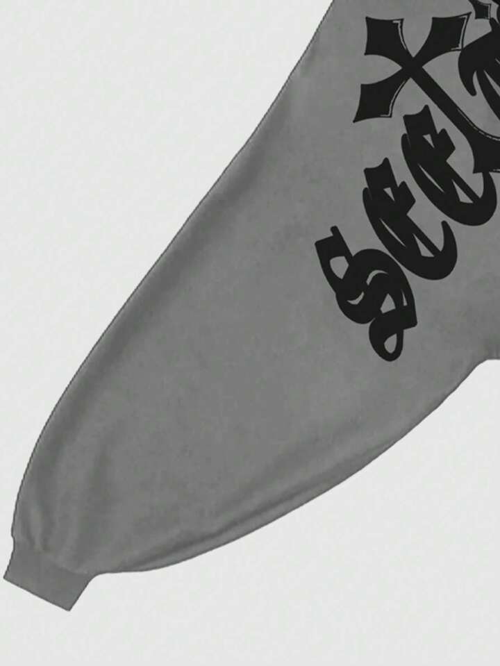 Herren Oversized Gothic Buchstaben Muster minimalistische lässige Pullover Kapuzensweater