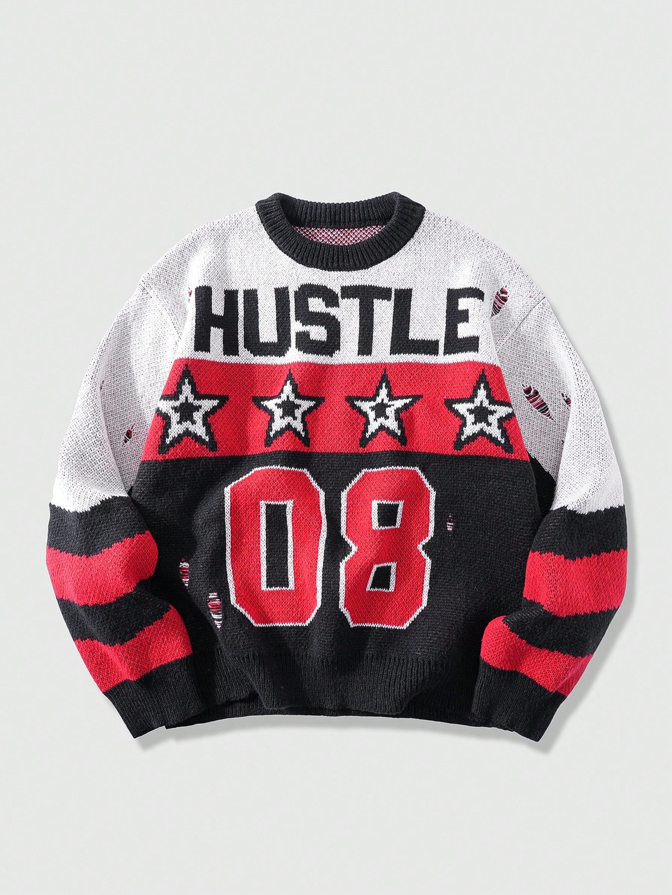Herren Preppy Lässig Pullover Sweater mit Buchstaben- und Pentagramm-Jacquard-Muster, Herbst/Winter, Langarm-Oberteil