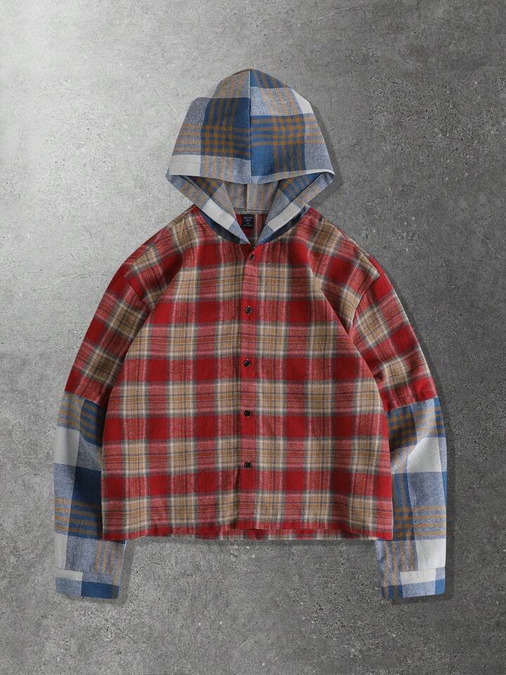 Herren Retro Patchwork Kontrast Karohemd, Loose Fit