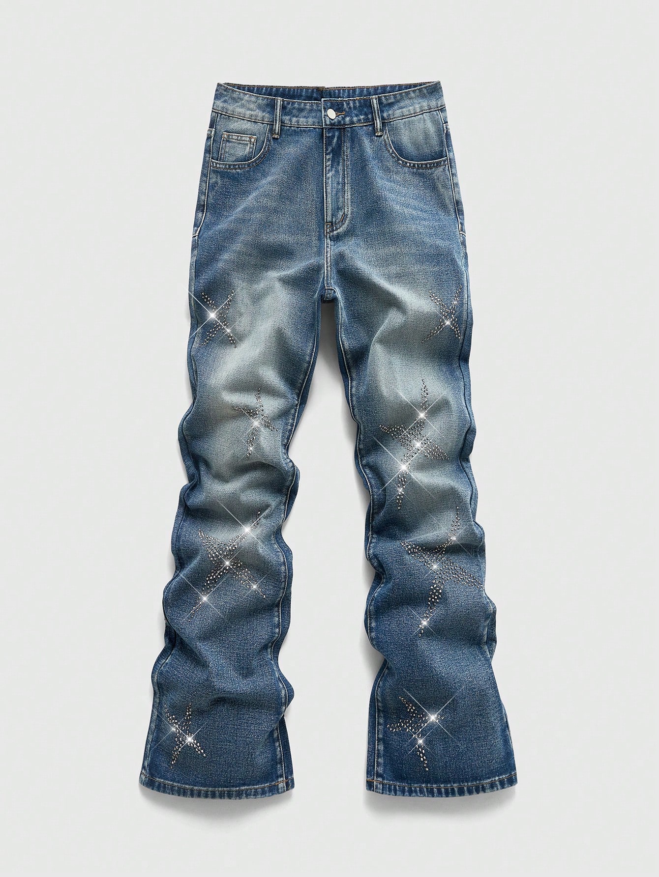 Herren Jeans mit Strass-Verzierung an der Tasche und weitem Bein, Lässig