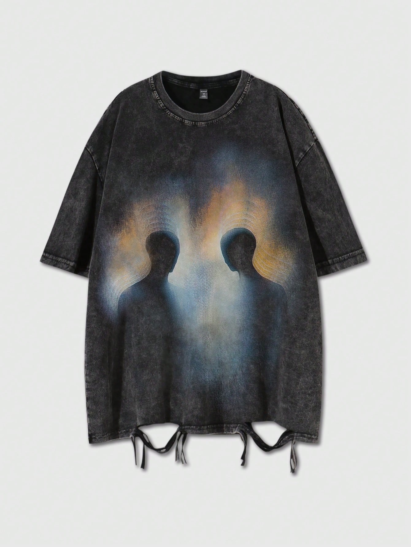 Herren Rundhals T-Shirt mit abgenutztem Design und Silhouetten-Aufdruck, vielseitig für den täglichen Gebrauch, Kurzarm