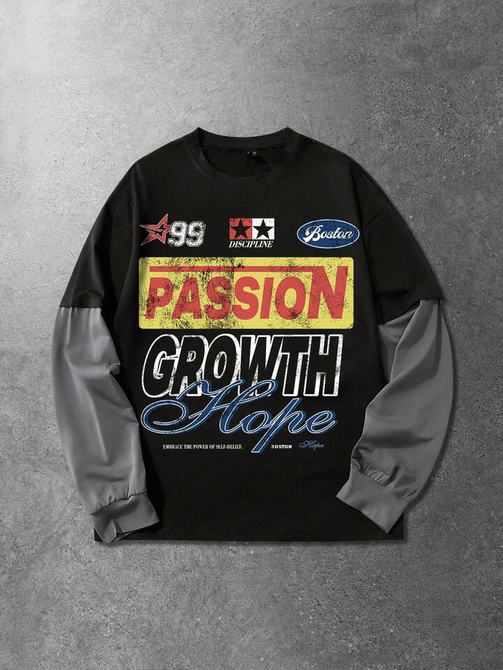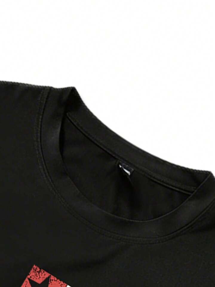 Herren Slogan Muster Rundhals Lässig 2 in 1 Sport T-Shirt