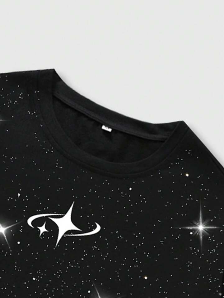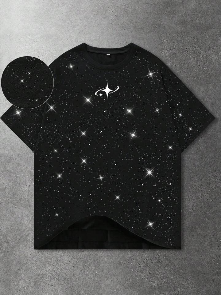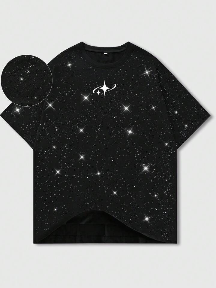 Herren Stern Muster Rundhals Kurzarm Lässig glänzendes T-Shirt
