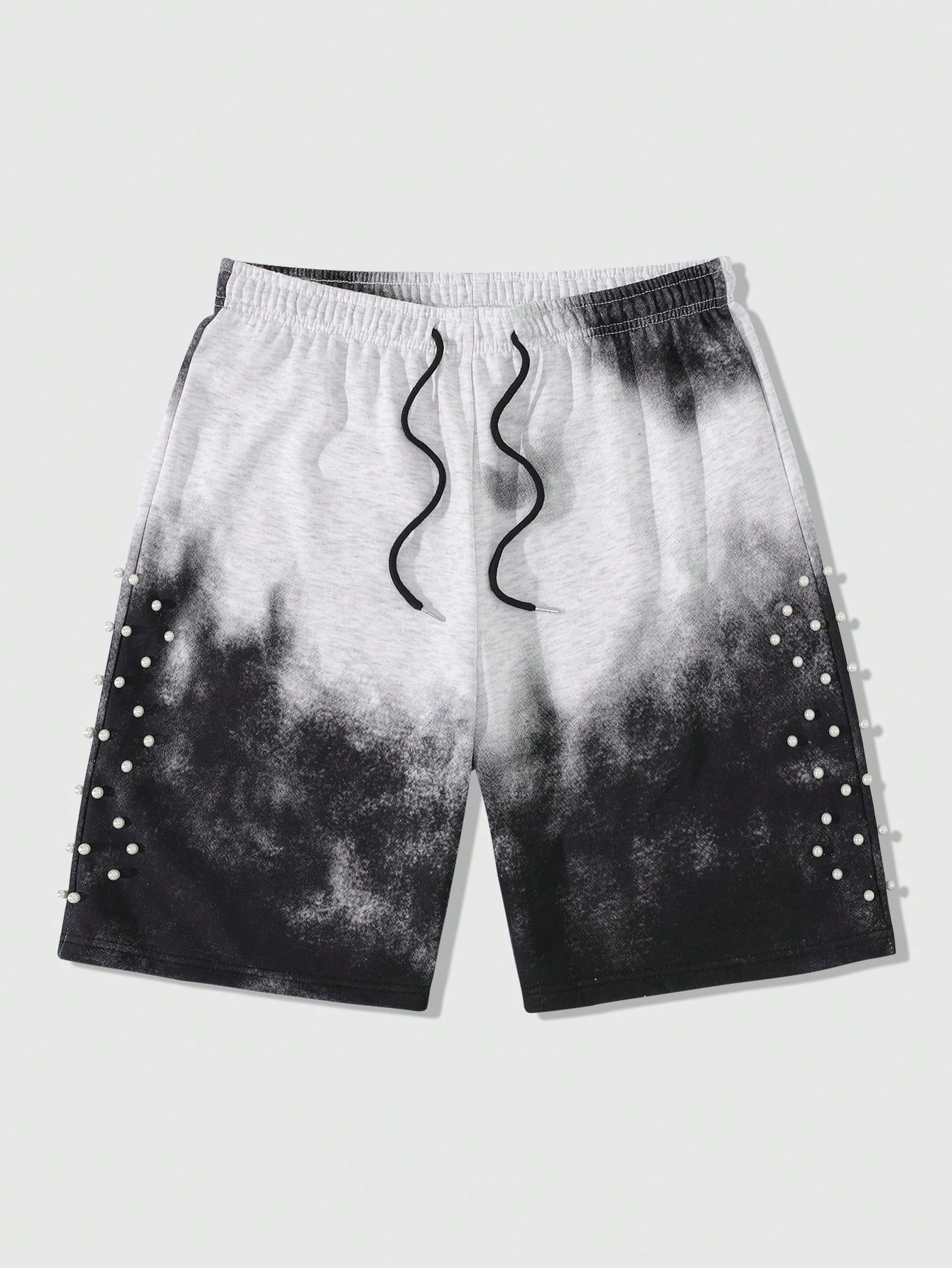 Street Life Herren Lose sitzende Shorts mit Spritzdekor und Perlen Verzierung