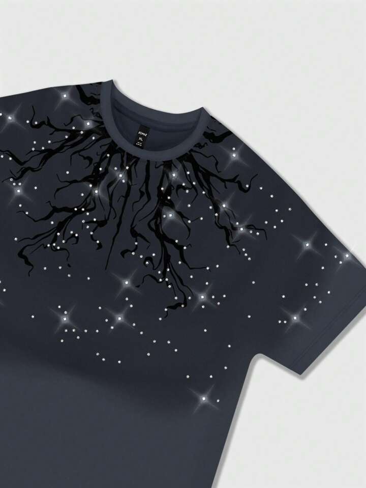 Herren Street Life Strass Muster Kurzarm T-Shirt, Rave