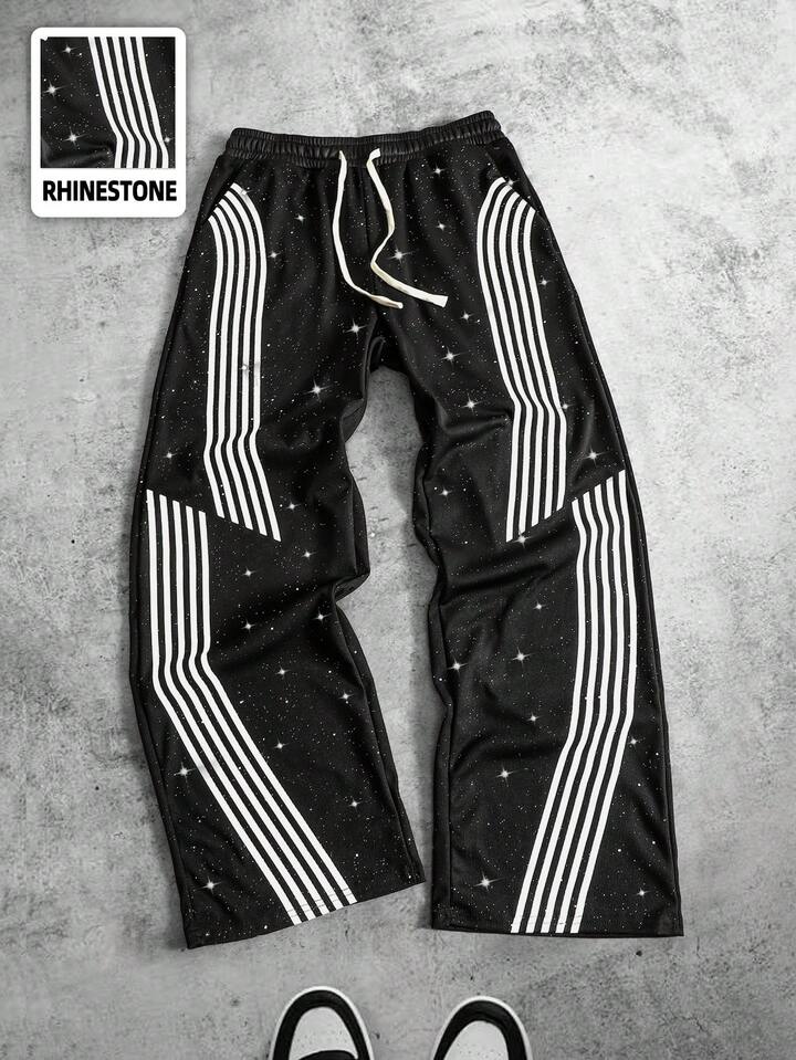 Herren gestreifte Glitzer Jogginghose mit Kordelzug in Loose Passform